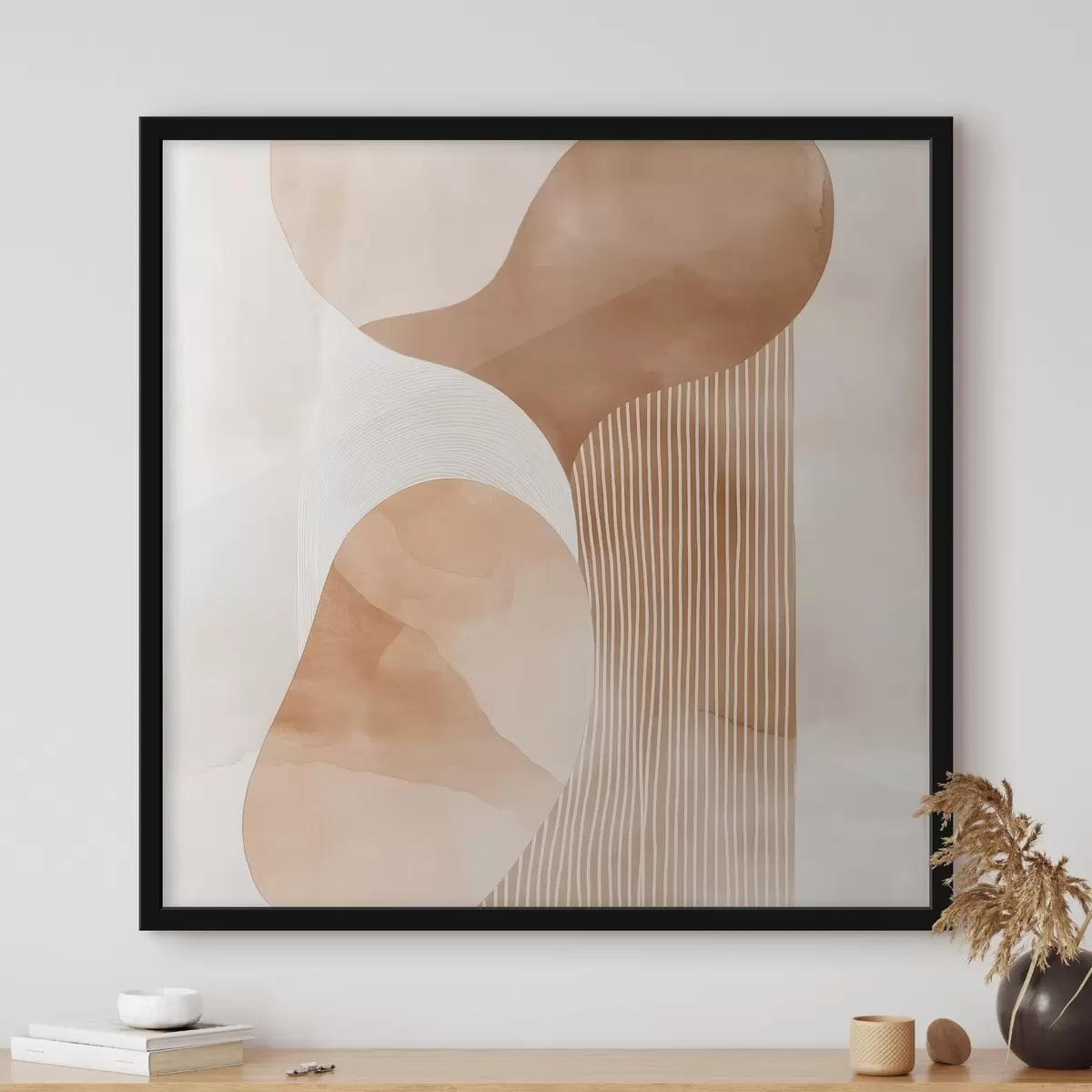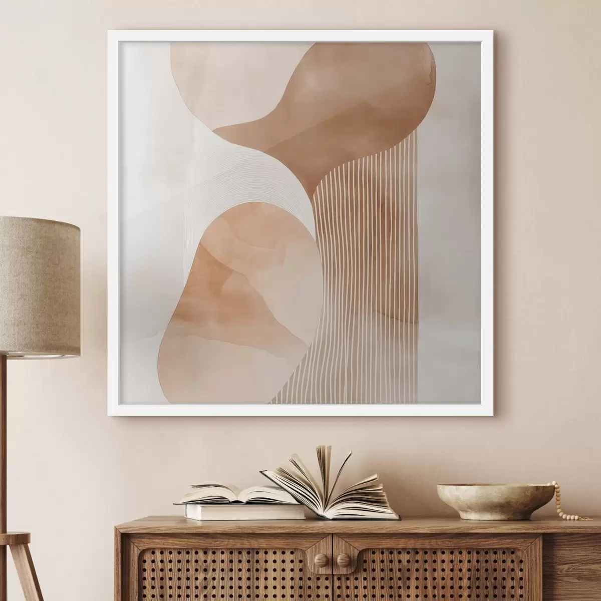 Poster Decoratieve kunst in een warm beige-koraalkleurig palet met een aquareleffect Nr f48870