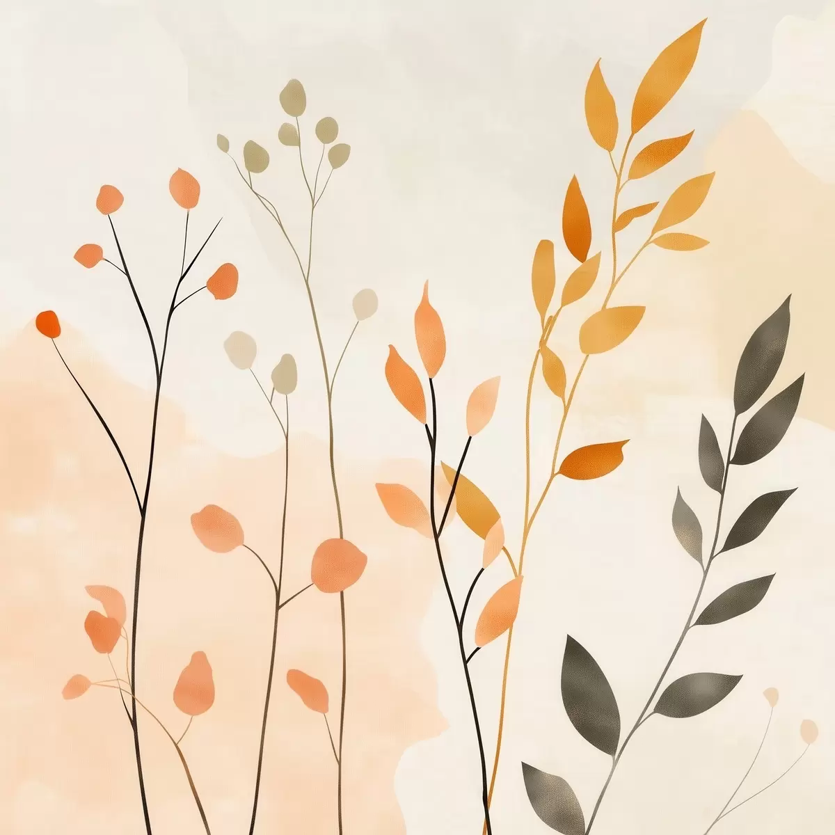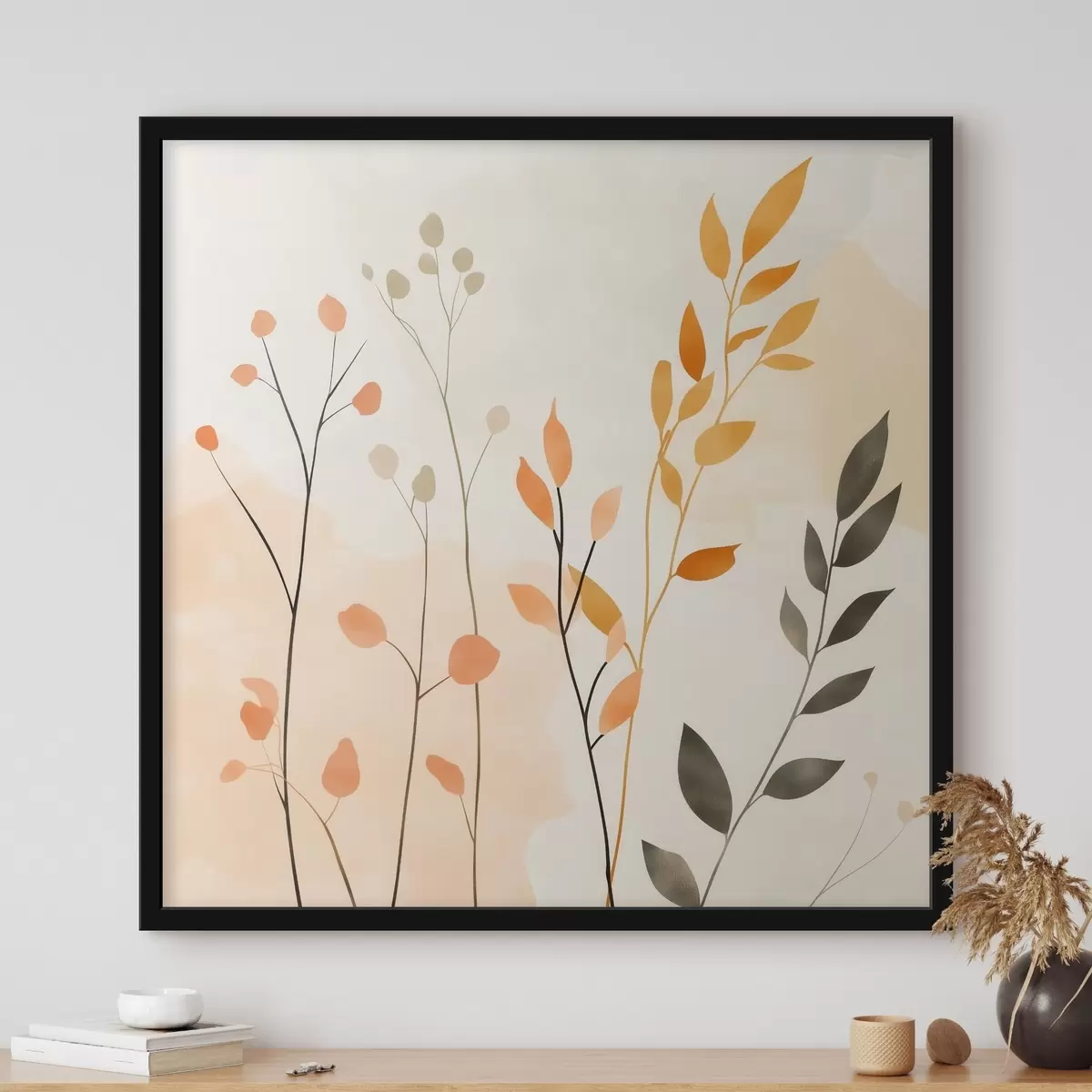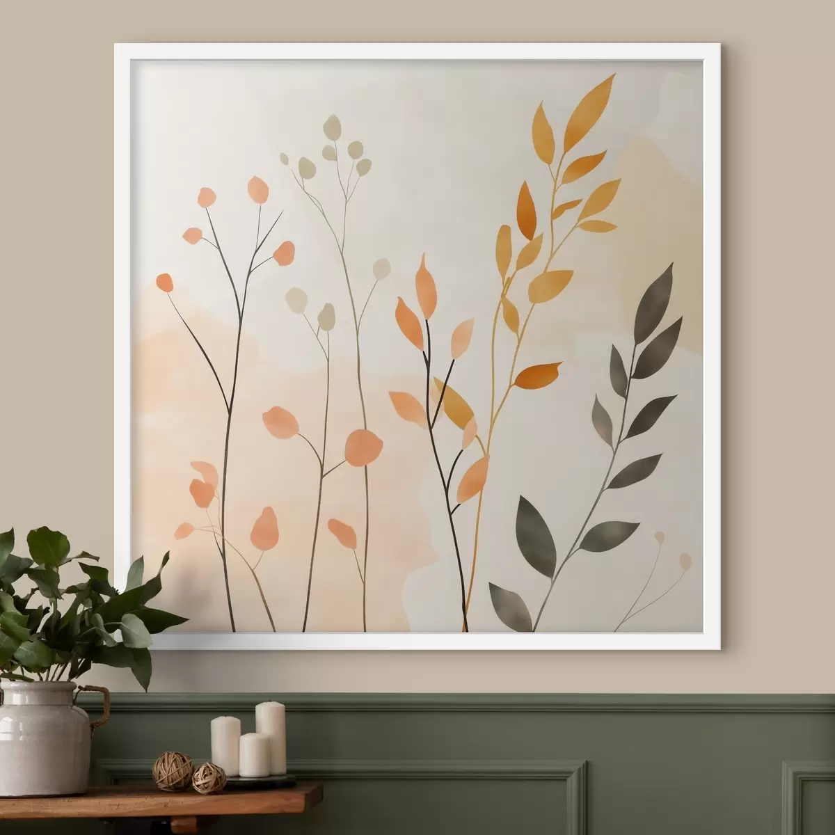 Poster Pastelcompositie met fijn bladwerk in een eigentijdse schilderstijl Nr f48873
