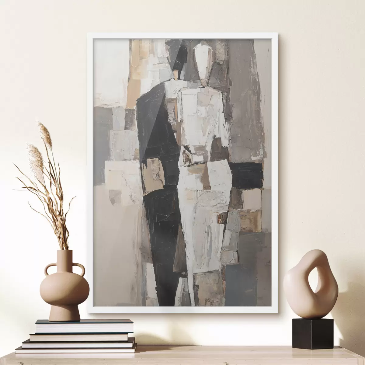 De poster bestaat uit een frame, plexiglas, geprinte afbeelding en spaanplaat achterkant. De poster kan meteen aan de muur worden gehangen dankzij de bevestigingen op de achterkant.