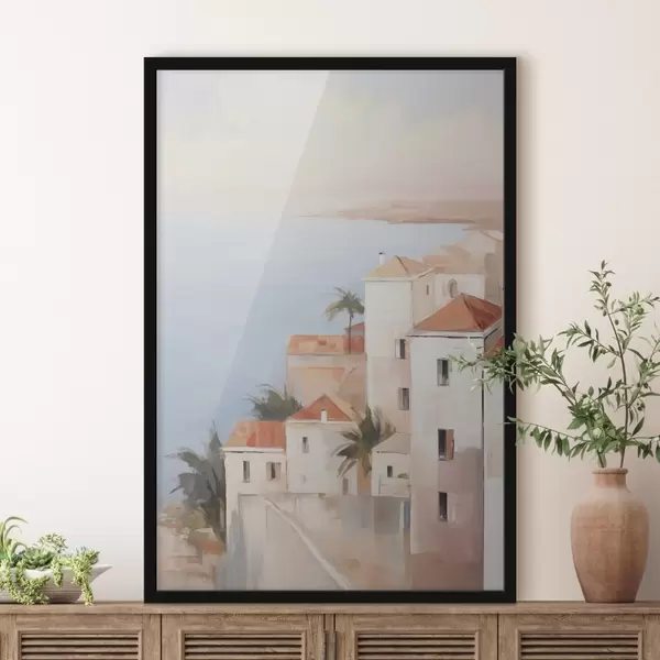 De poster bestaat uit een frame, plexiglas, geprinte afbeelding en spaanplaat achterkant. De poster kan meteen aan de muur worden gehangen dankzij de bevestigingen op de achterkant.