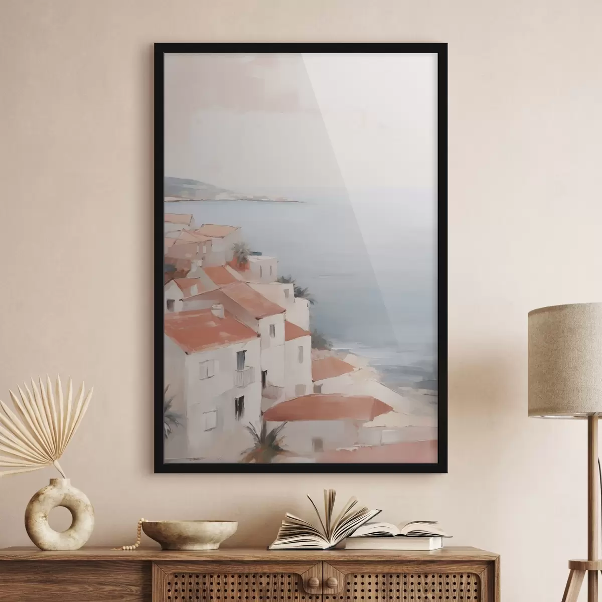 De poster bestaat uit een frame, plexiglas, geprinte afbeelding en spaanplaat achterkant. De poster kan meteen aan de muur worden gehangen dankzij de bevestigingen op de achterkant.