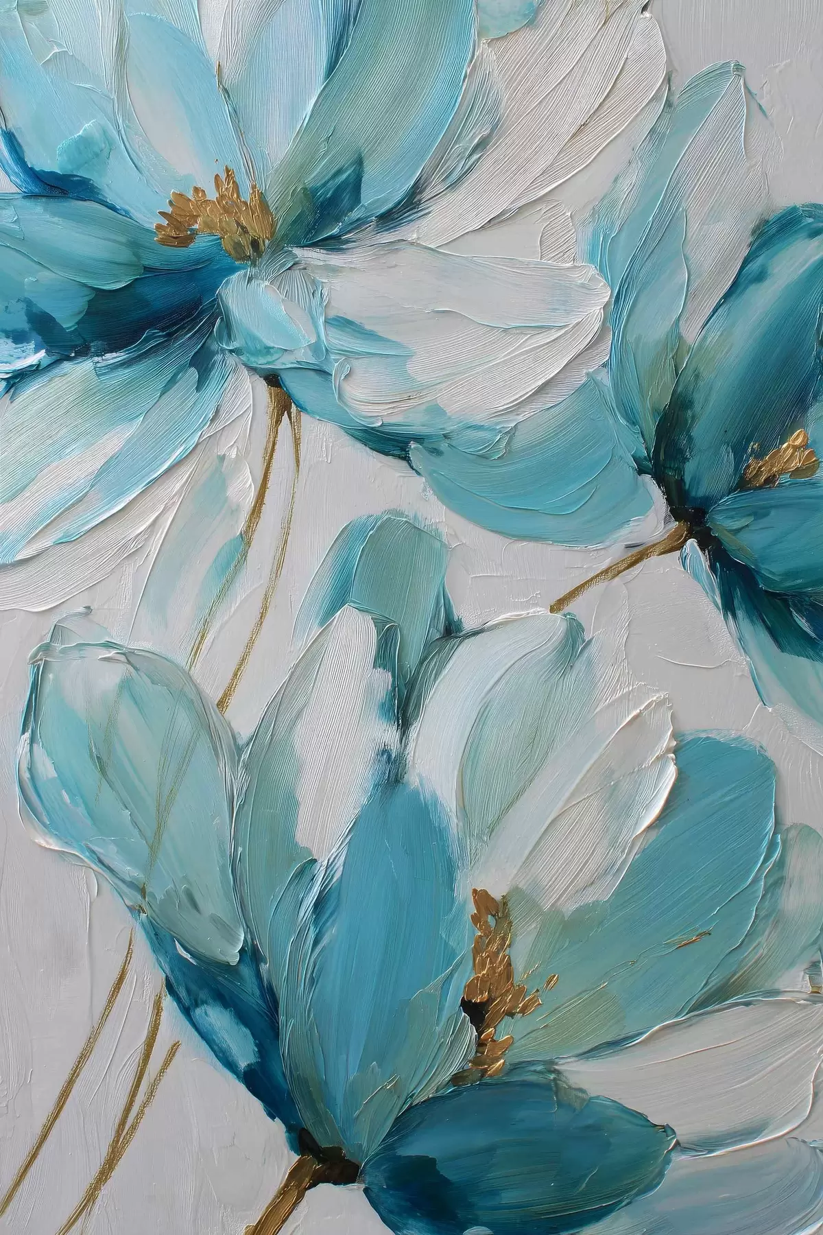 Poster blauwe bloemen in impasto-stijl Nr f48991