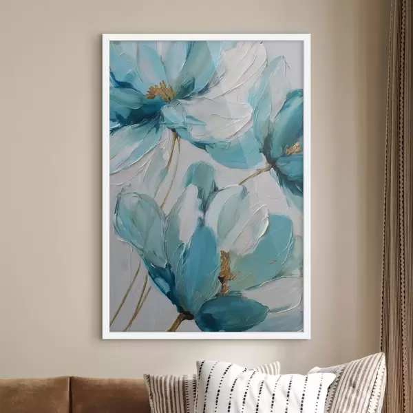 Poster blauwe bloemen in impasto-stijl f48991