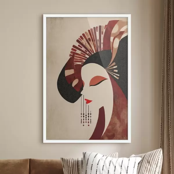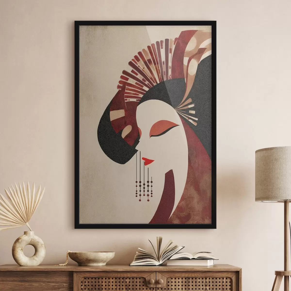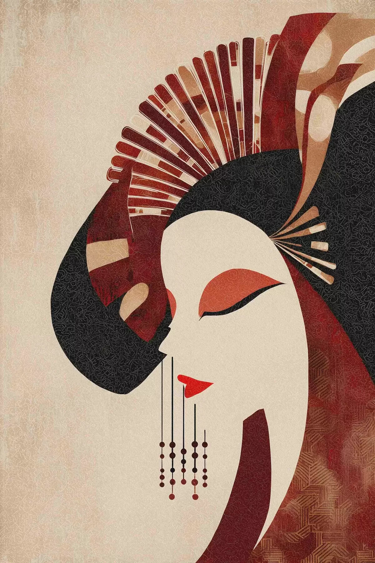 Poster gestileerd portret van een vrouw, geïnspireerd door de Japanse en art-deco-esthetiek Nr f48994
