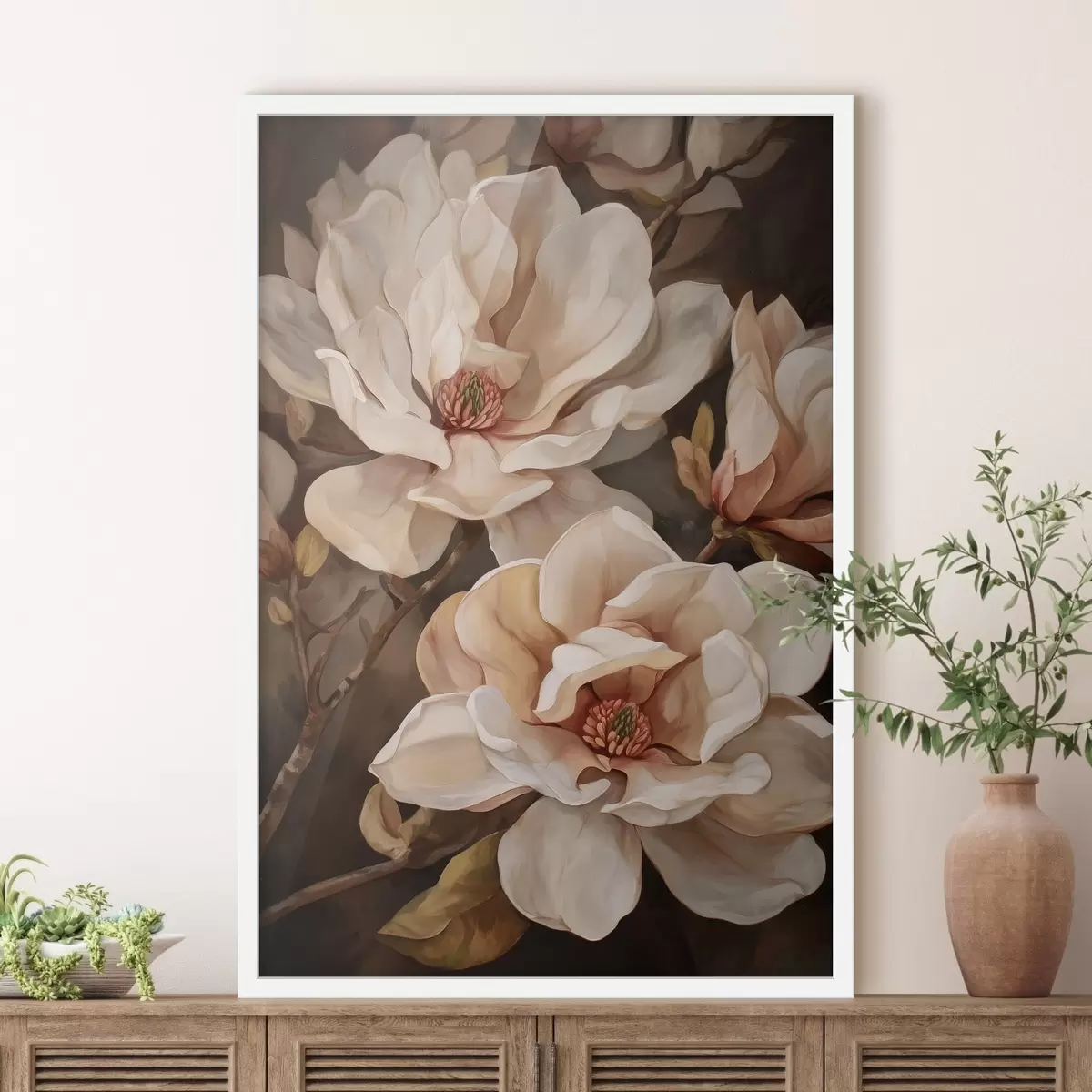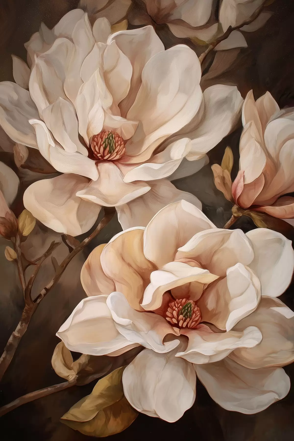 Poster Tak met magnoliabloemen f49015