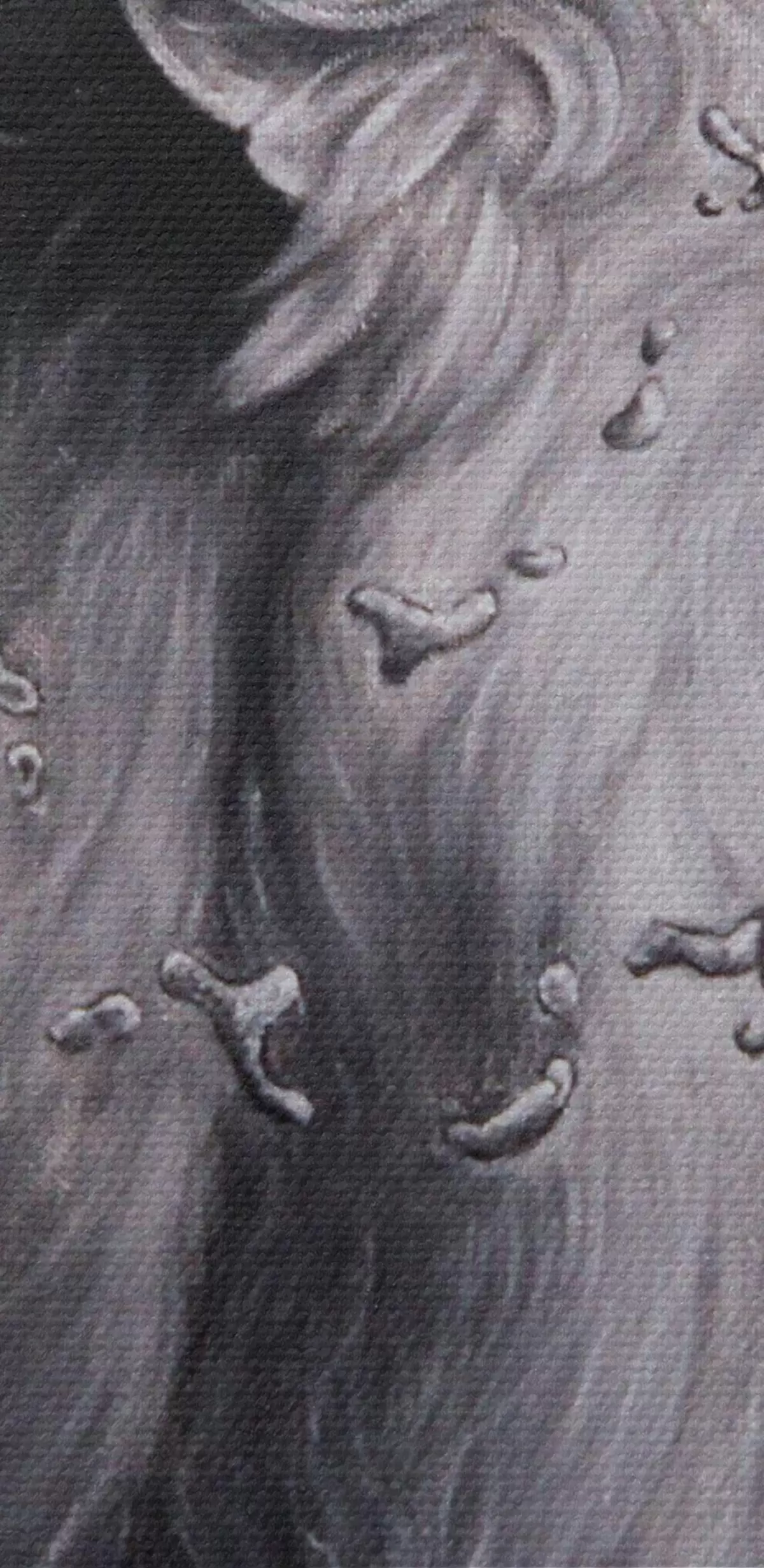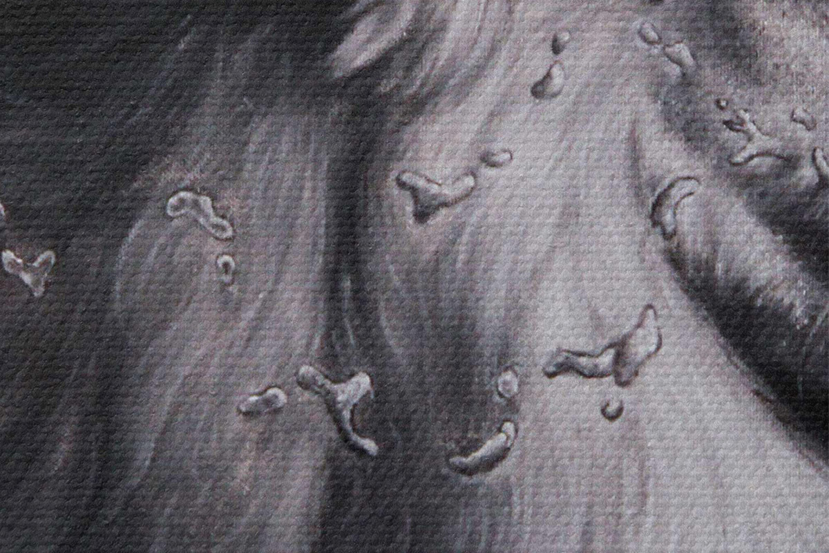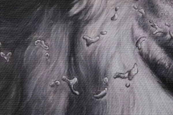 Het schilderij kan voorzichtig worden schoongeveegd met een droge zachte doek of spons; het wordt niet aanbevolen om natte producten te gebruiken. Het gebruik van een vochtige spons is alleen toegestaan als het schilderij gevernist is.