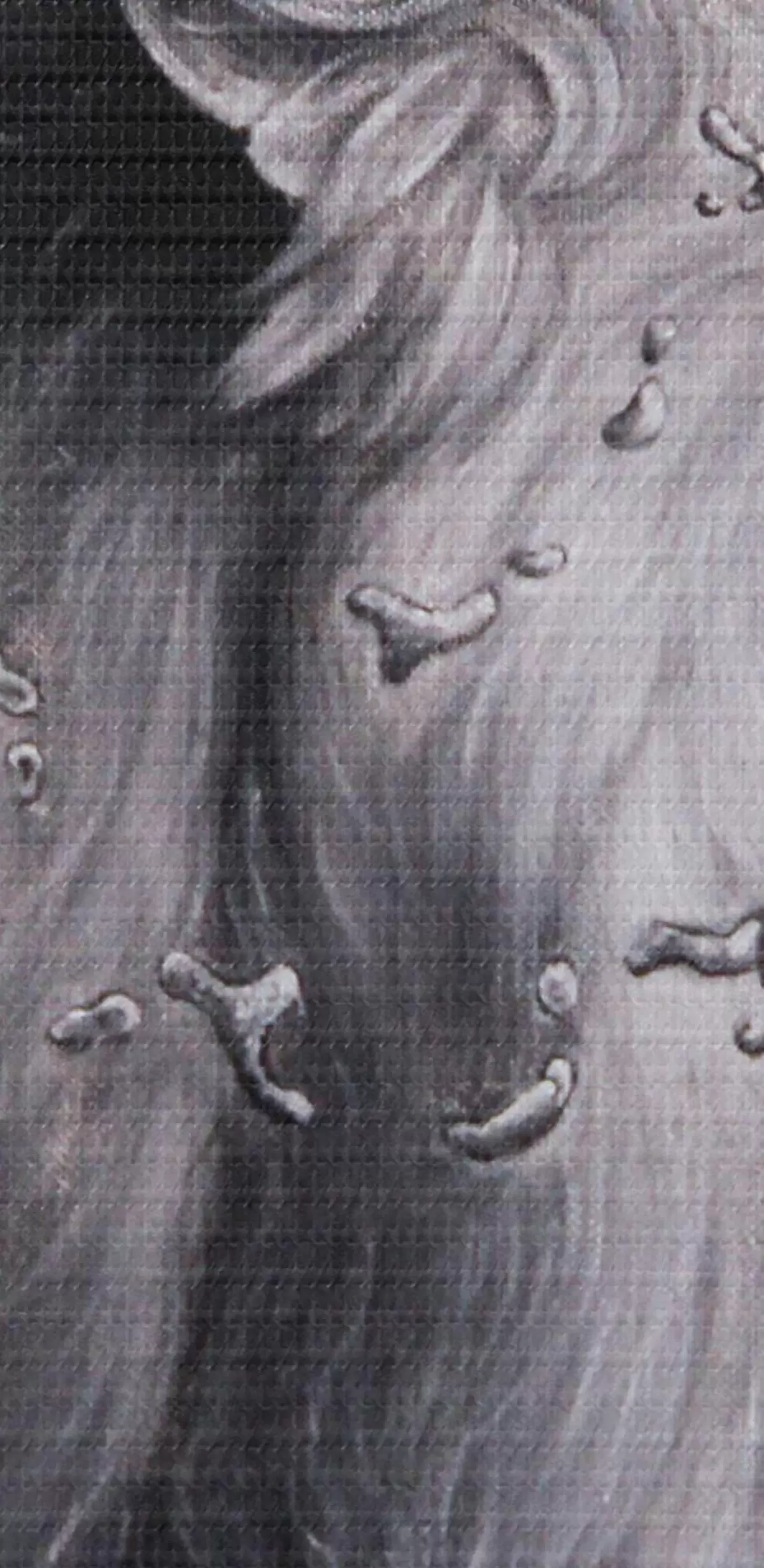 Om het doek op te spannen op spielatten zonder de afbeelding te beschadigen, gebruiken we gespiegeld beeld.