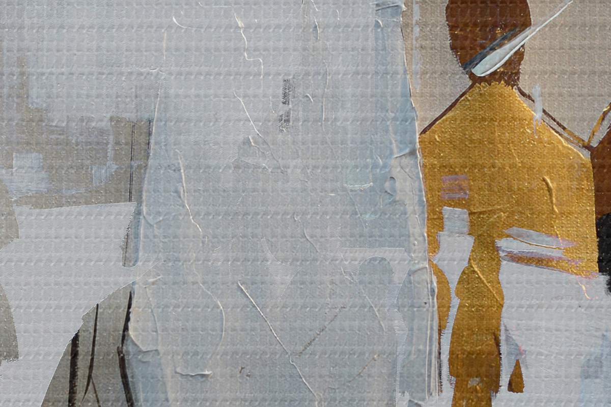 Het schilderij kan voorzichtig worden schoongeveegd met een droge zachte doek of spons; het wordt niet aanbevolen om natte producten te gebruiken. Het gebruik van een vochtige spons is alleen toegestaan als het schilderij gevernist is.