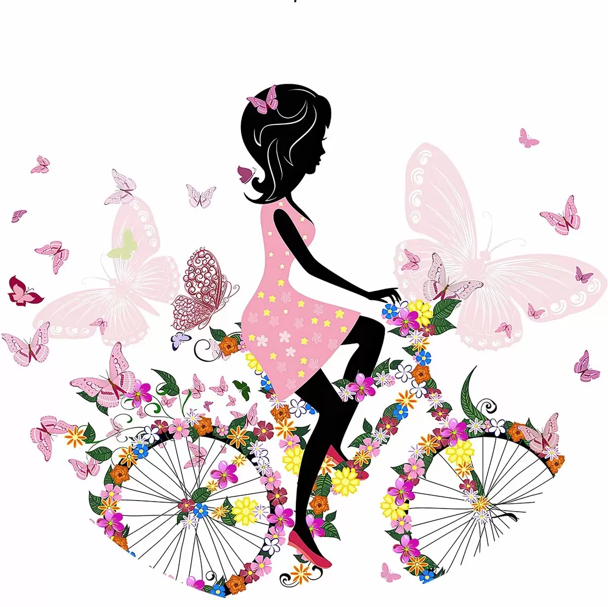 Afbeelding Fiets, mensen in de natuur en bloem Nr r08603