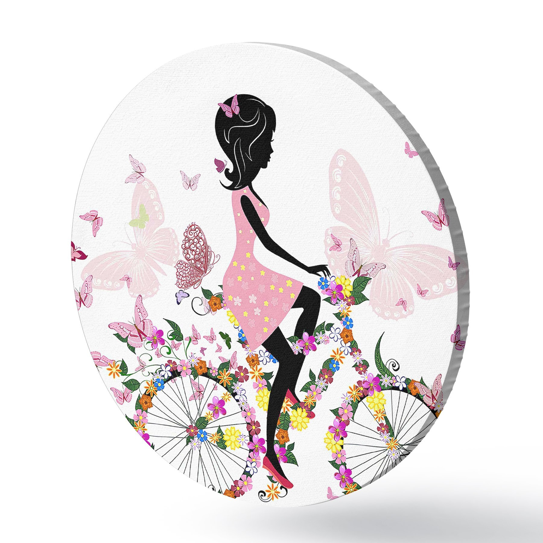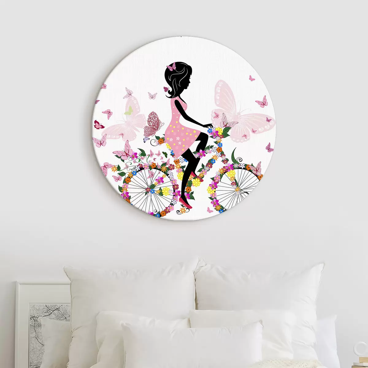 Ronde schilderijen Fiets, mensen in de natuur en bloem r08603