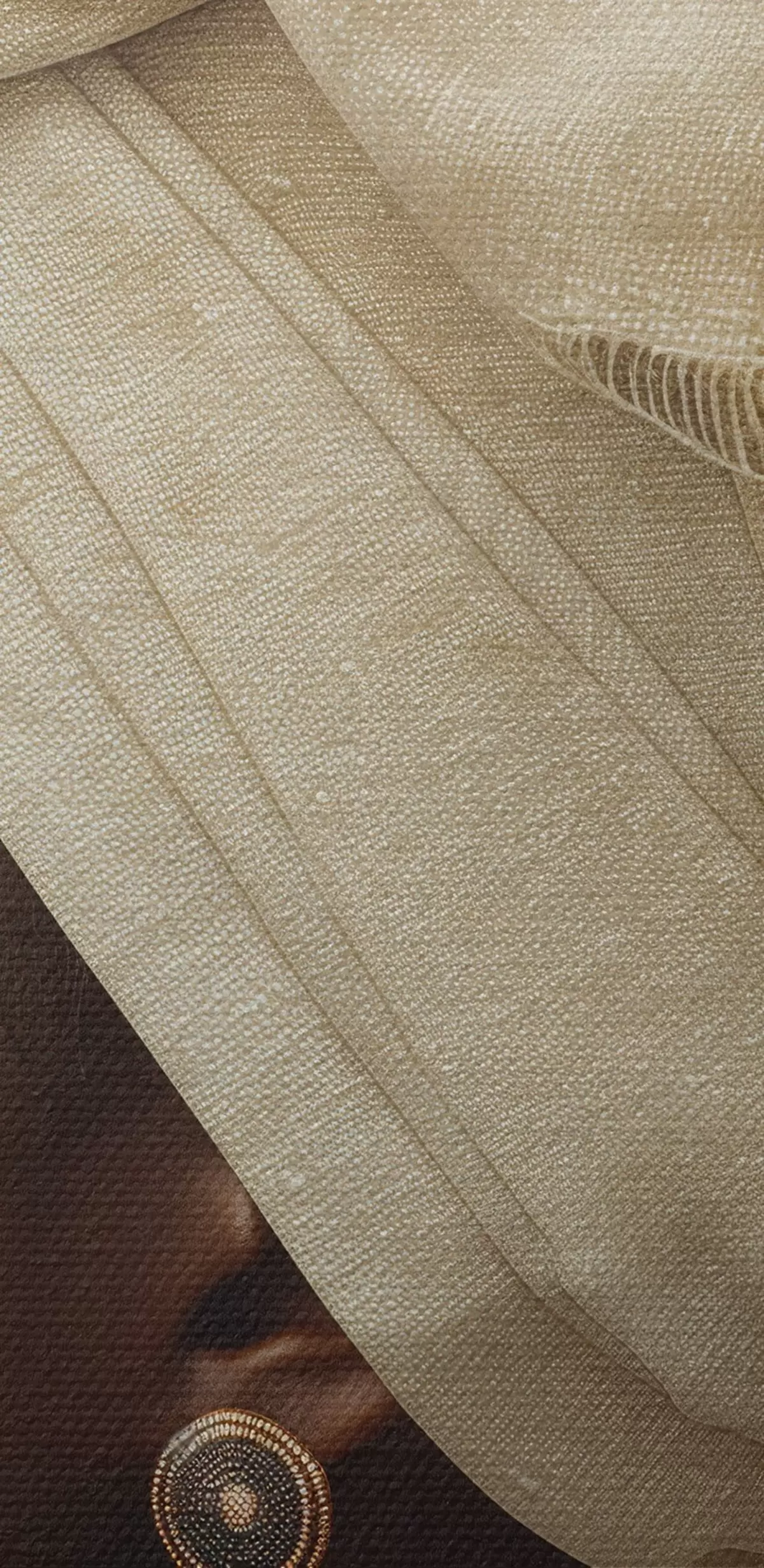 Afbeelding beige portret van een vrouw in Afrikaanse stijl in profiel met grote oorbellen Nr r26120