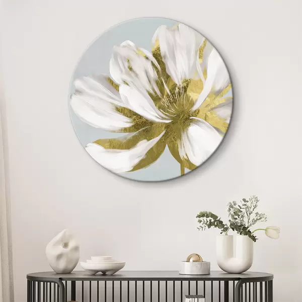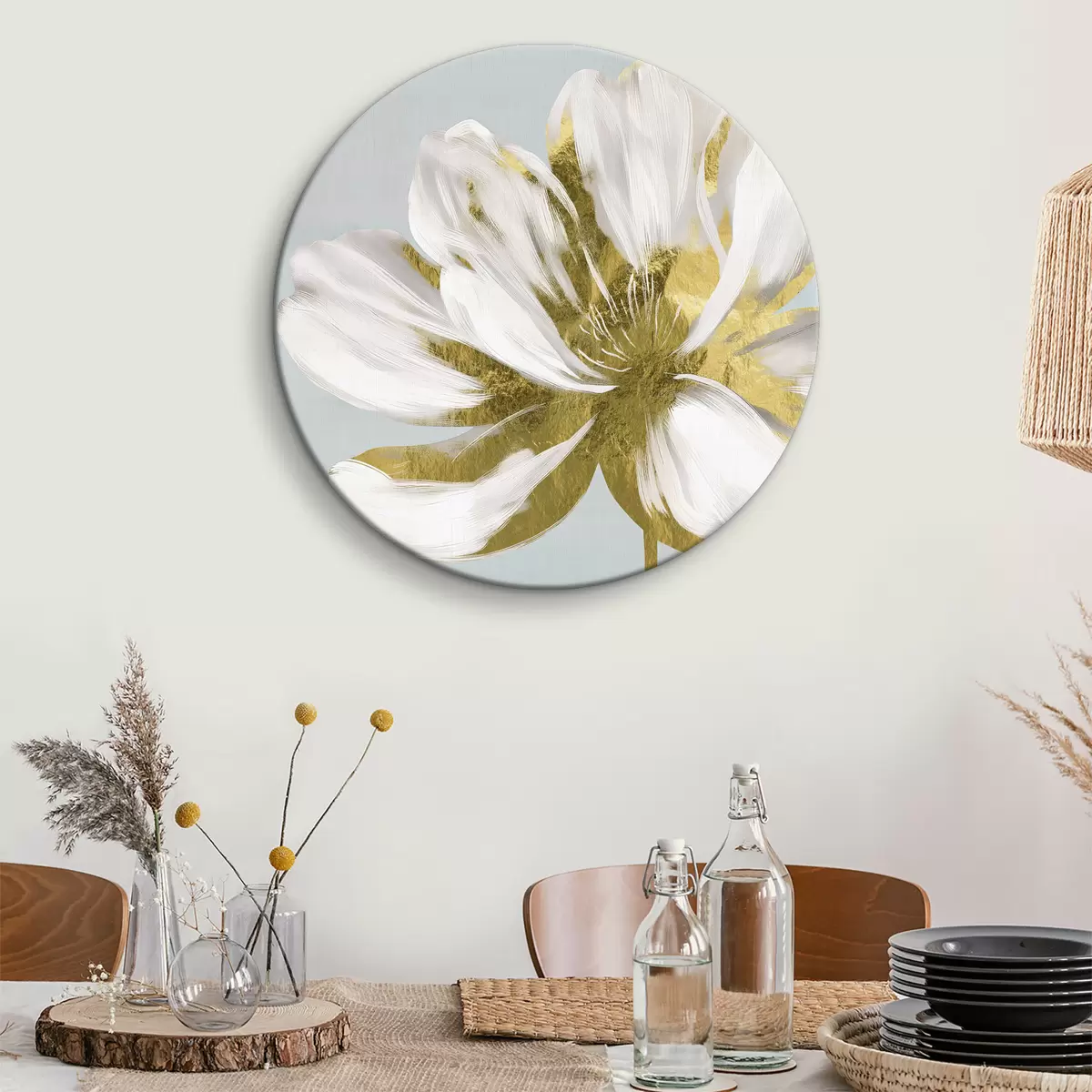 Ronde schilderijen Grote abstracte bloem op een blauwe achtergrond r26121