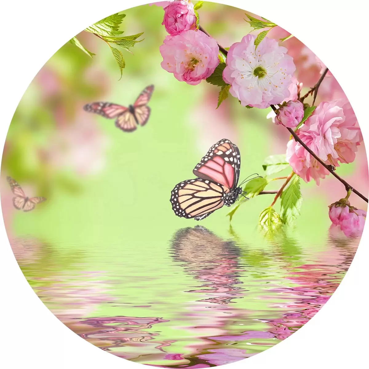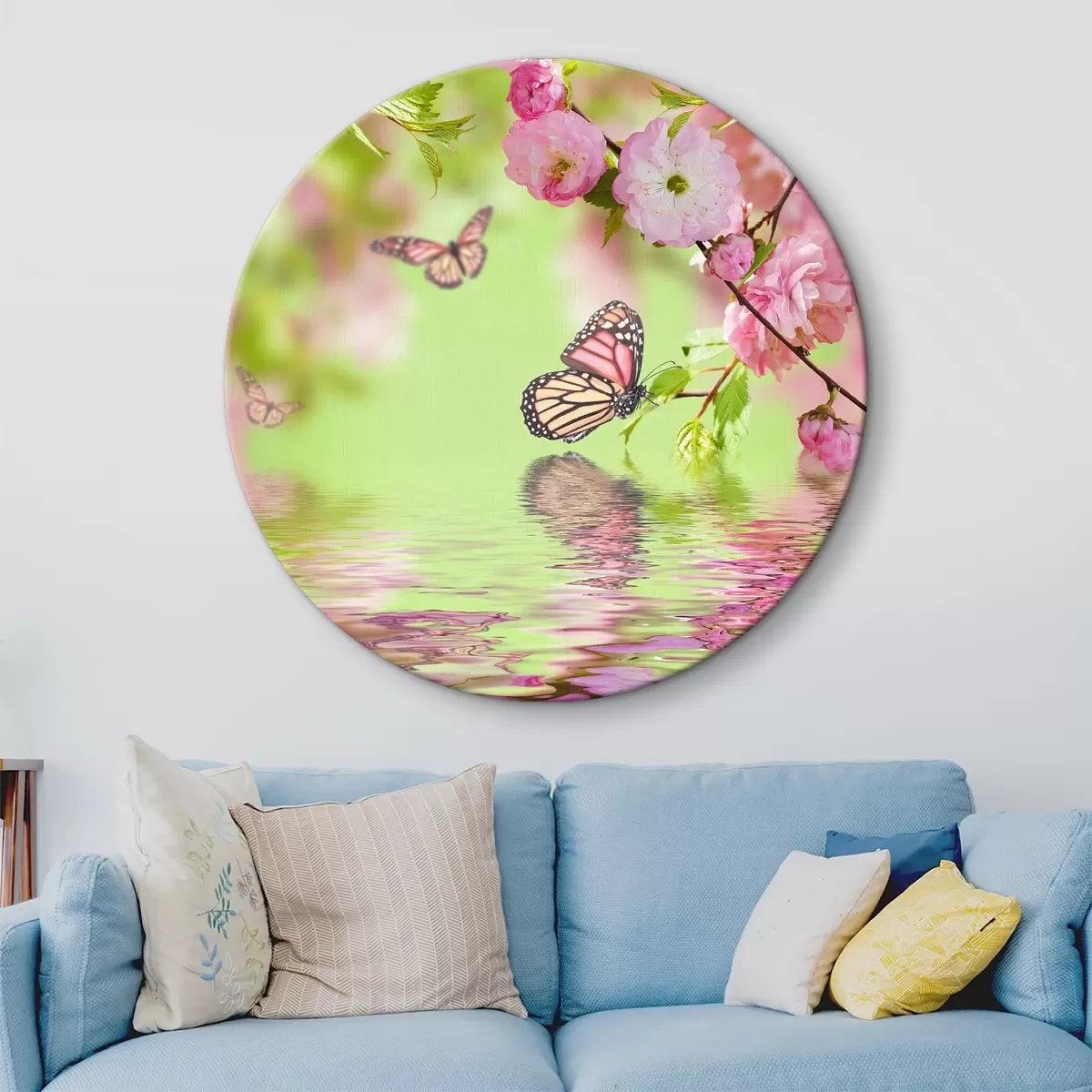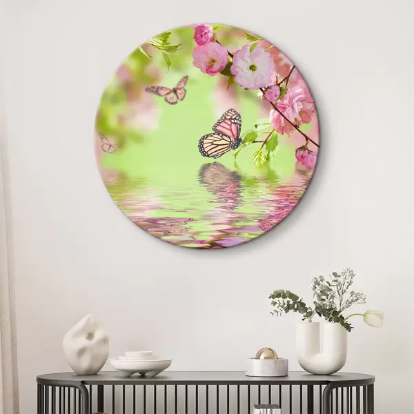 Ronde schilderijen Bestuivers, bloemen en vlinders r27029