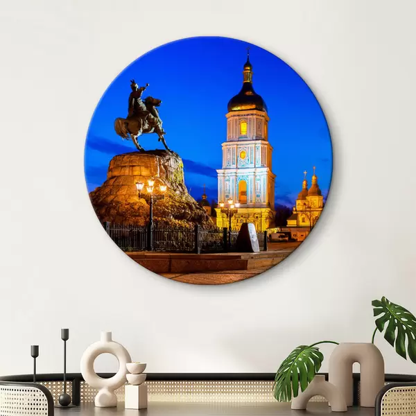Ronde schilderijen Lucht, paard en gebouw r32020
