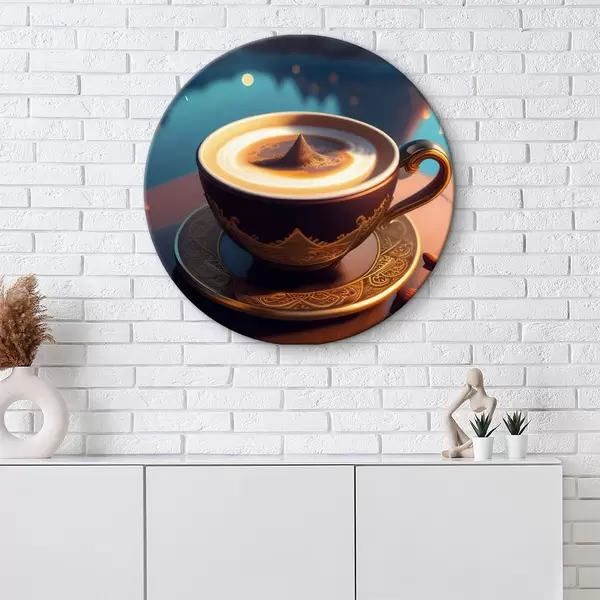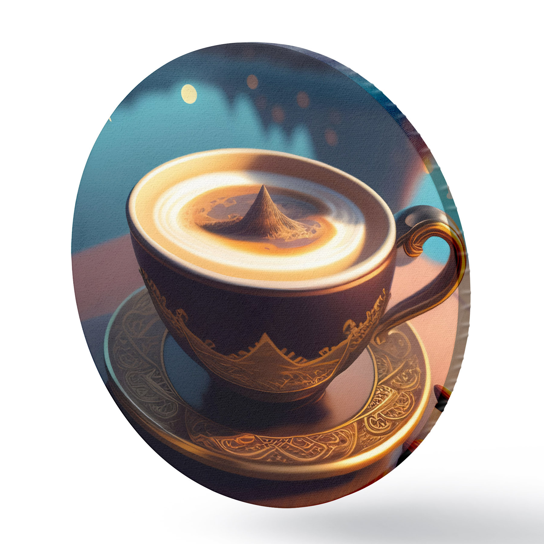 Ronde schilderijen Koffie tegen de achtergrond van een berglandschap r32140