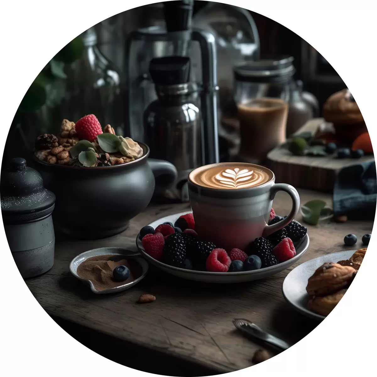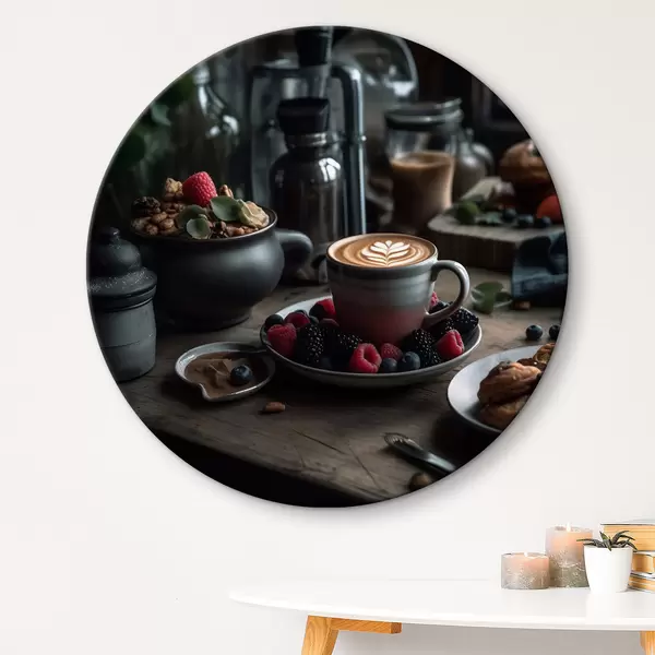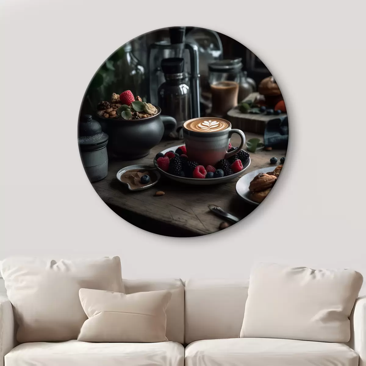 Ronde schilderijen Gezond ontbijt met cappuccino r32154