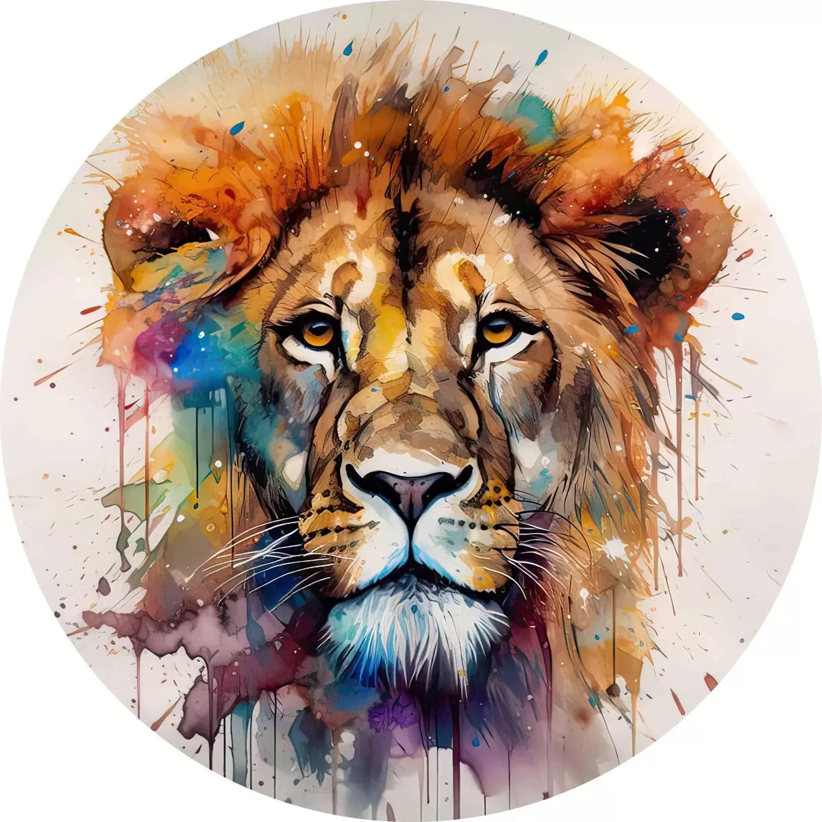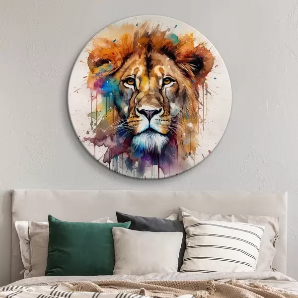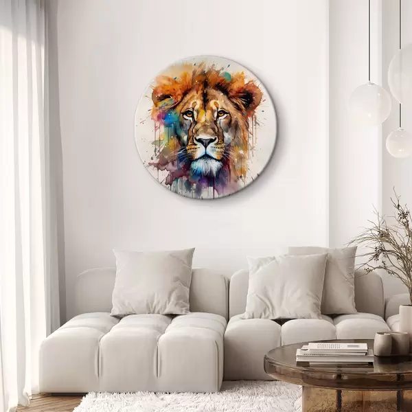 Ronde schilderijen Een leeuw in aquarelstijl r32325