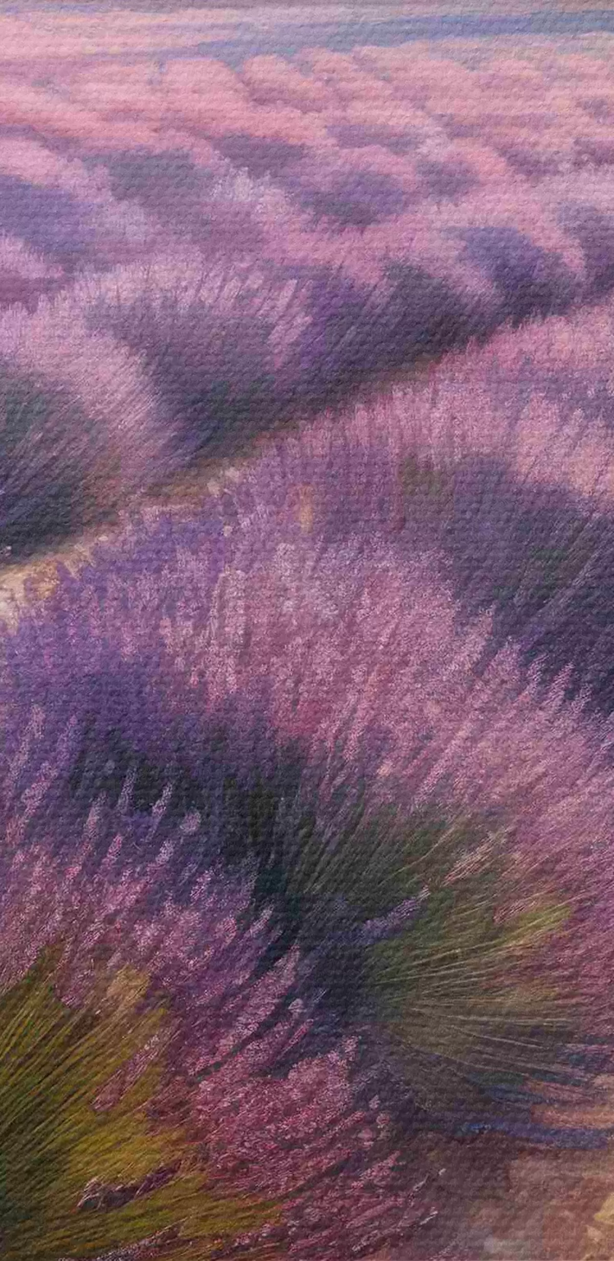 De fijne weving van draden op dit doek lijkt op het oppervlak van professionele schildersdoeken.