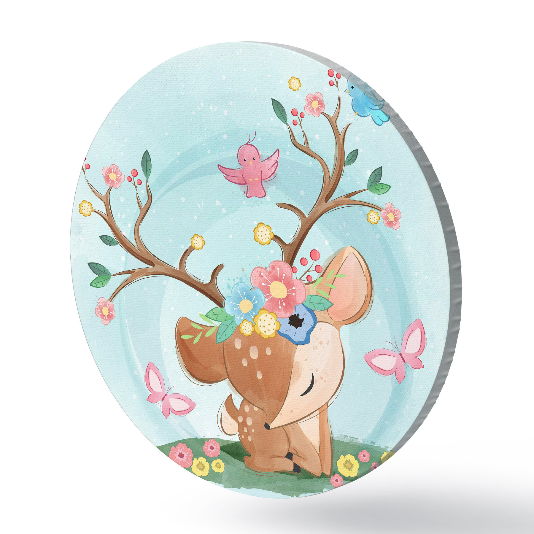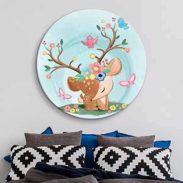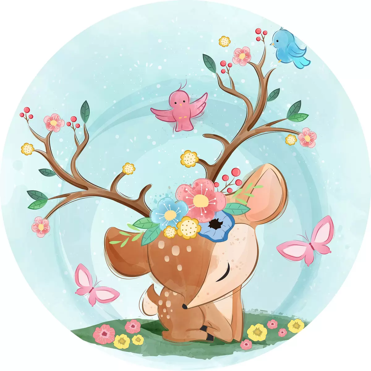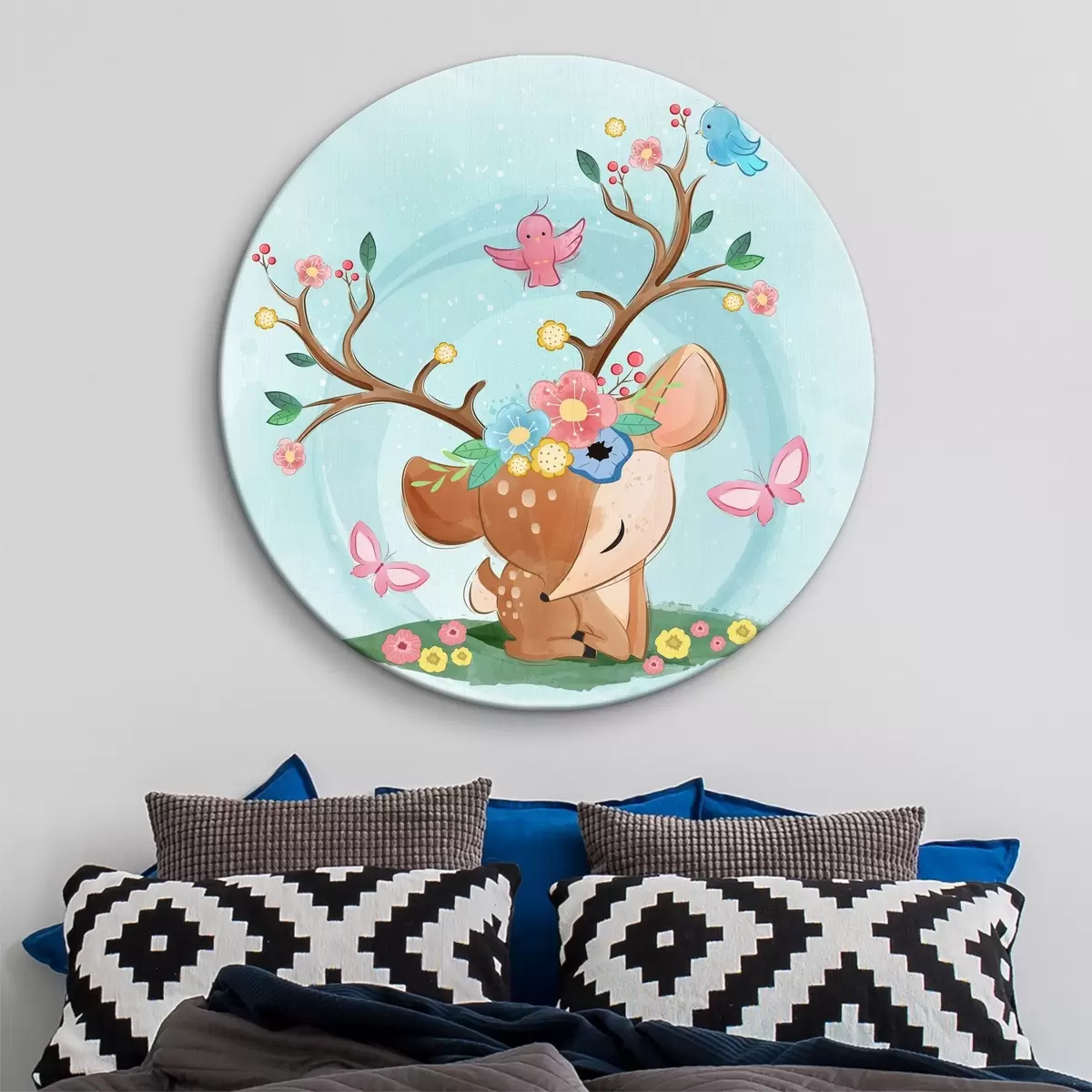 Ronde schilderijen Schattig hertje met bloemen r32795