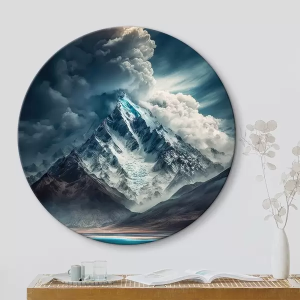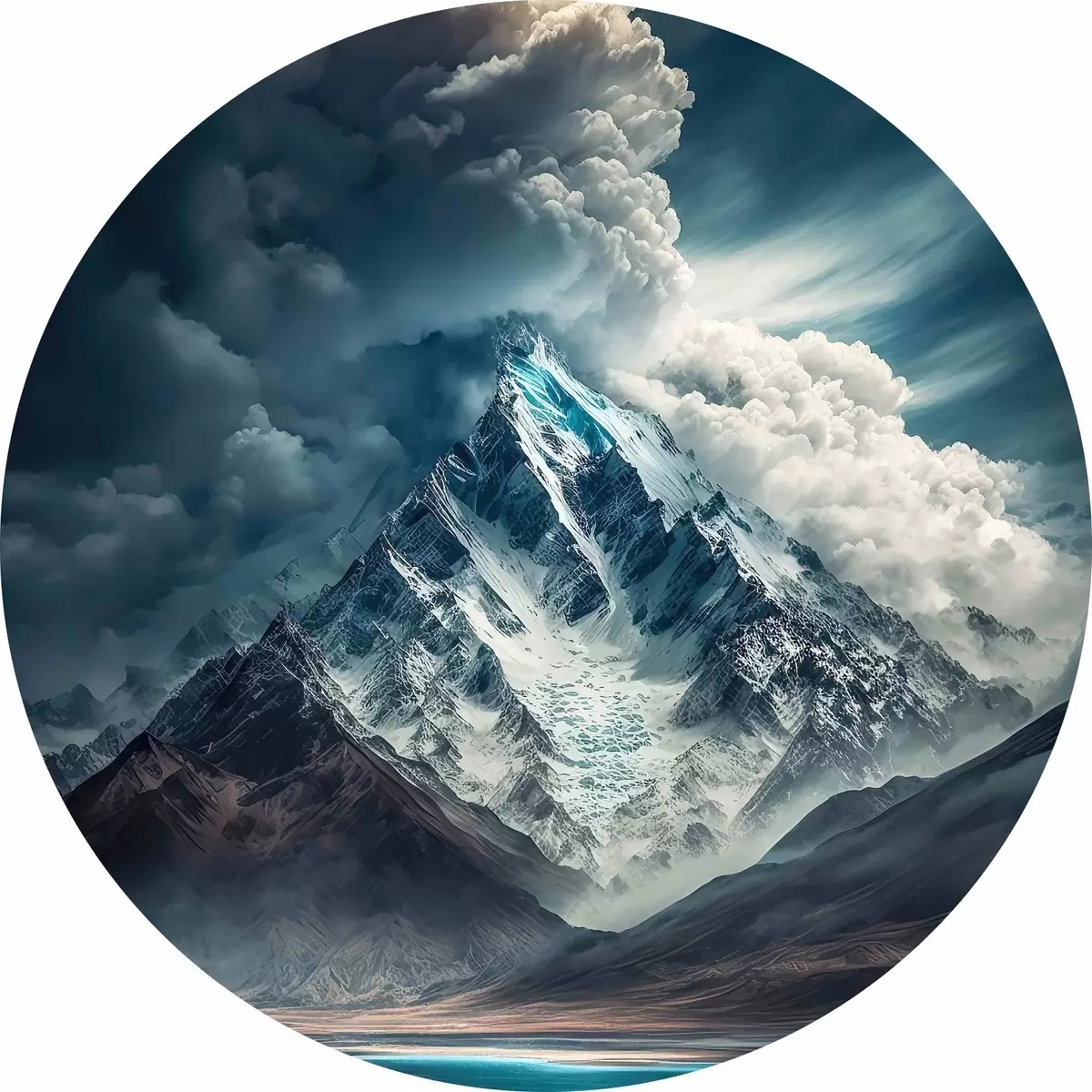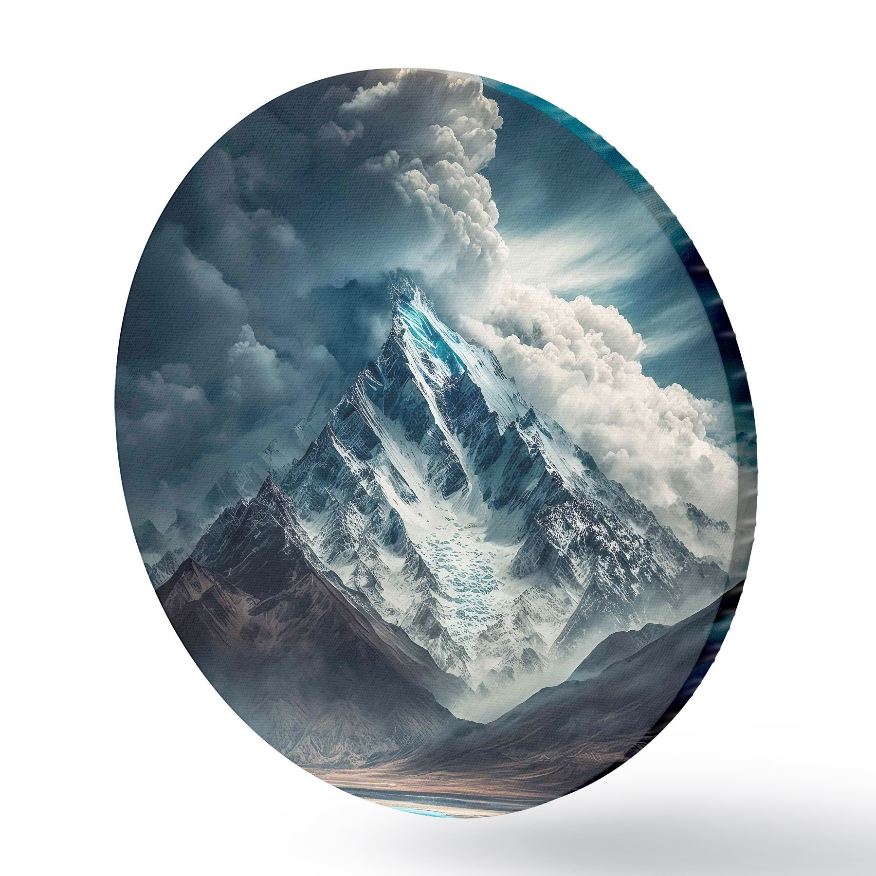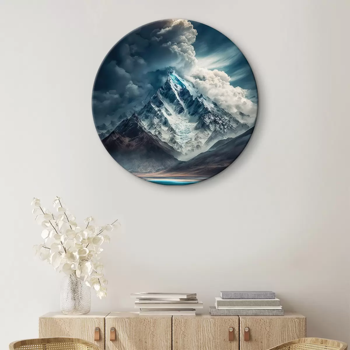 Ronde schilderijen Bergen, meer en enorme wolken r33082