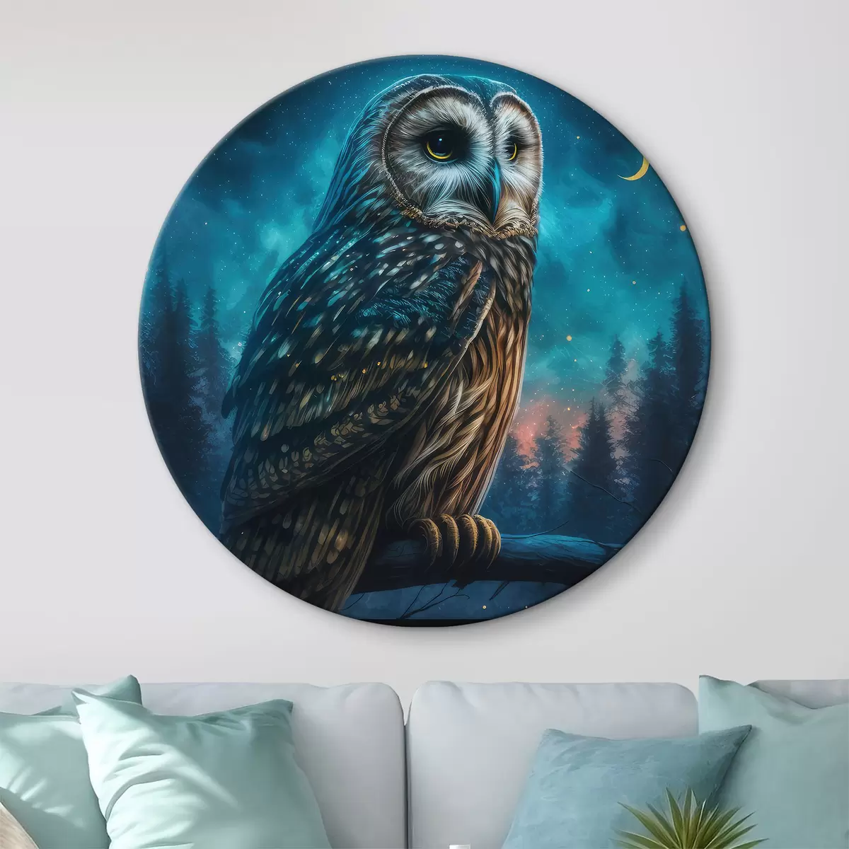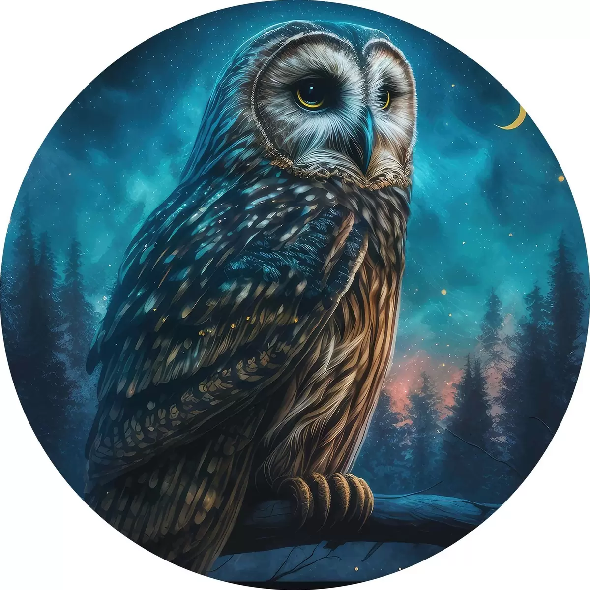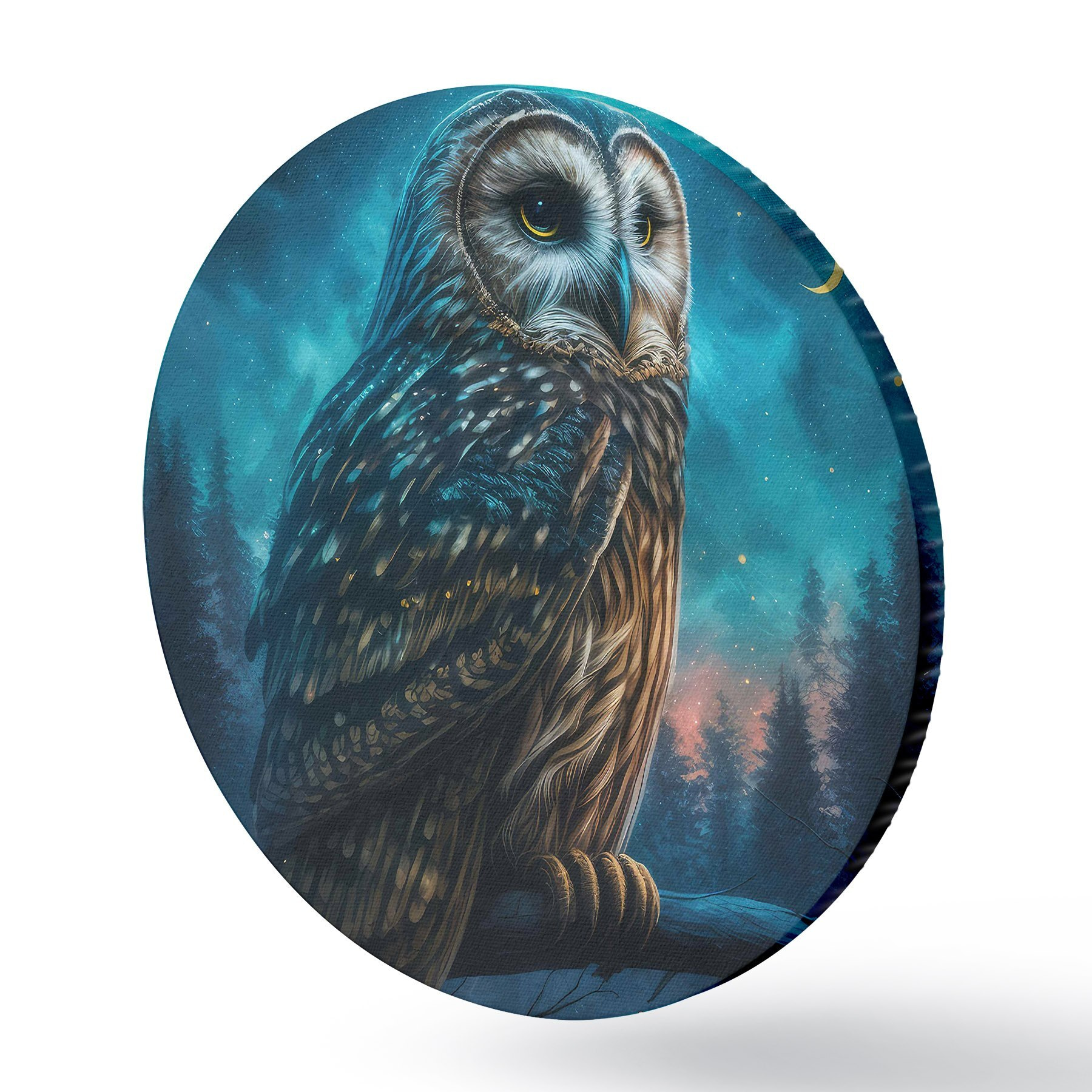 Ronde schilderijen Uil in het nachtbos r33544