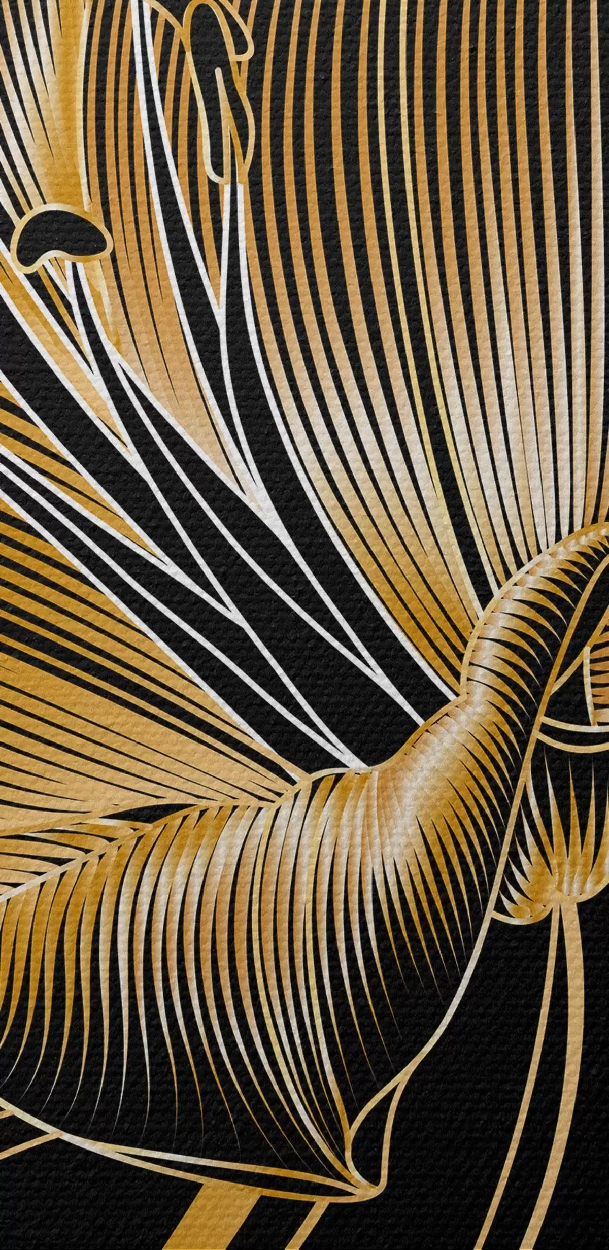 Het schilderij kan direct na ontvangst worden opgehangen. Het schilderij wordt opgespannen op een 2 cm breed houten spieraam.