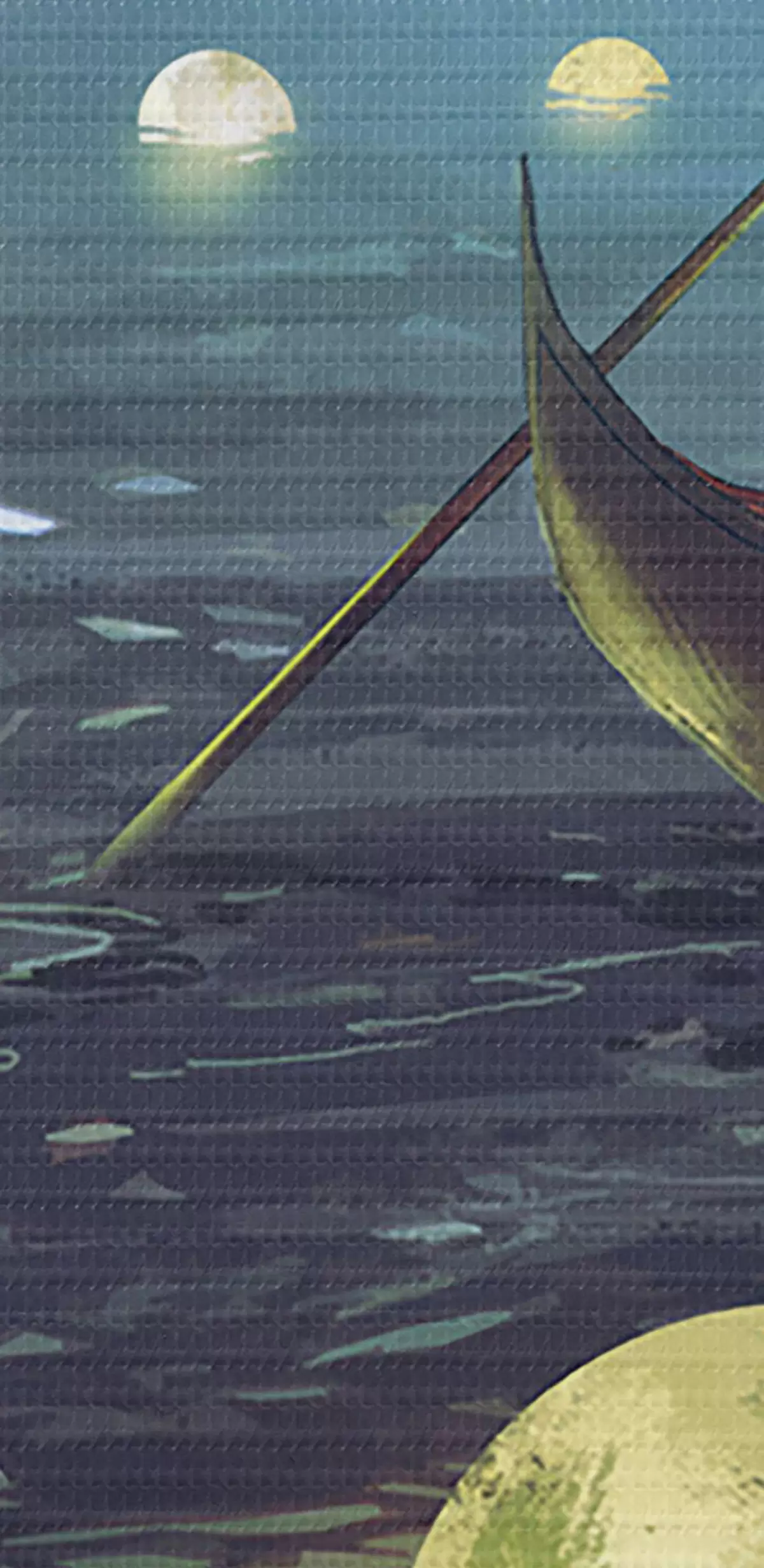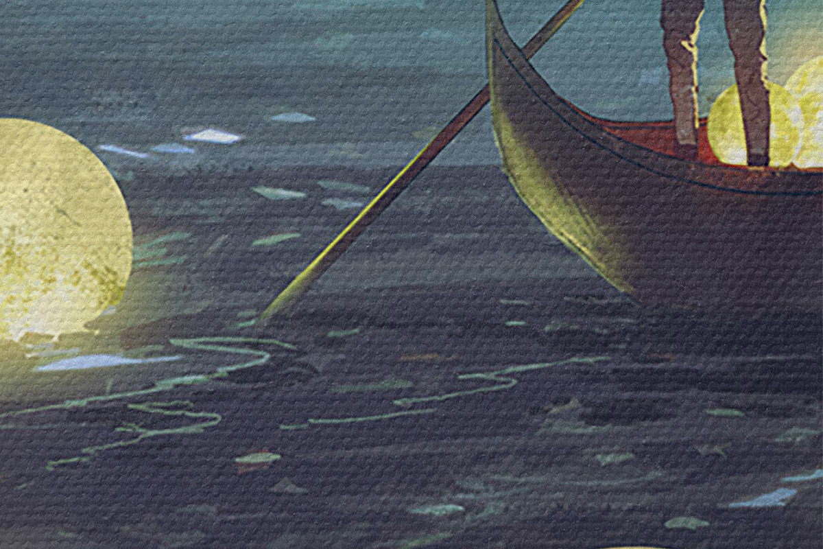 Afbeelding Een man in een boot tegen de achtergrond van de schijnende maan Nr r34544