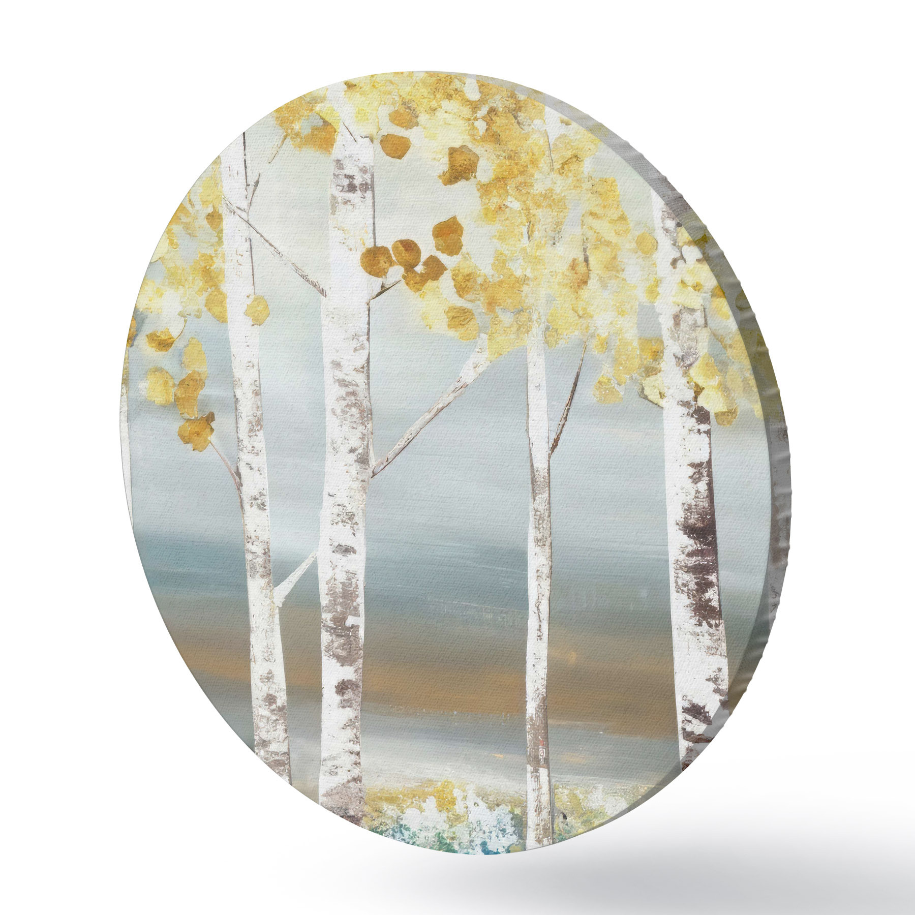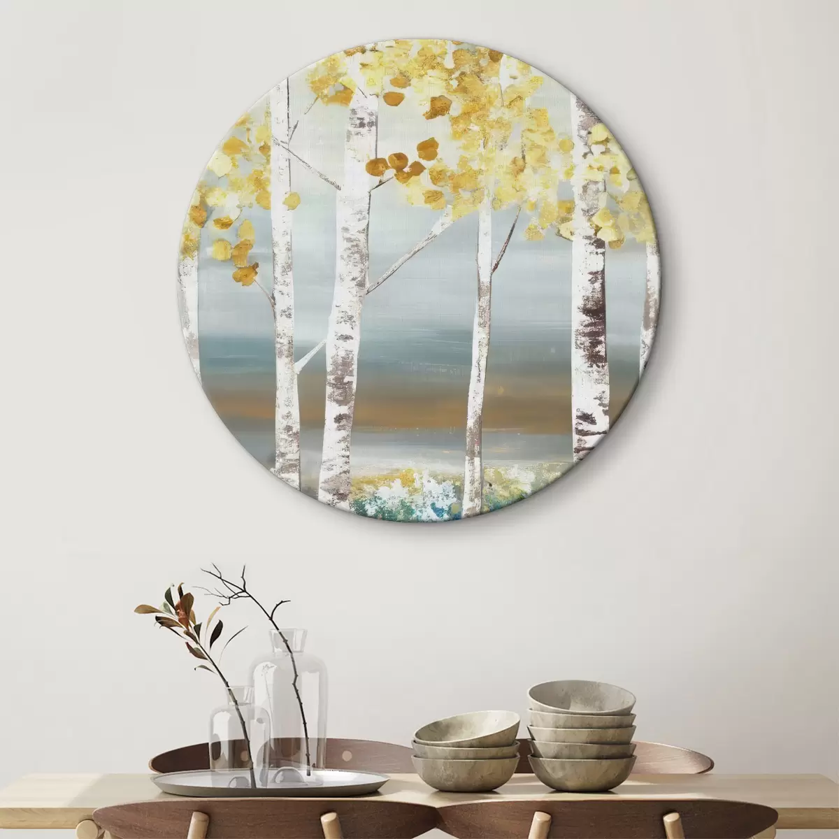 Ronde schilderijen Olieverfschilderij met berken tegen de achtergrond van regenachtig weer r34602