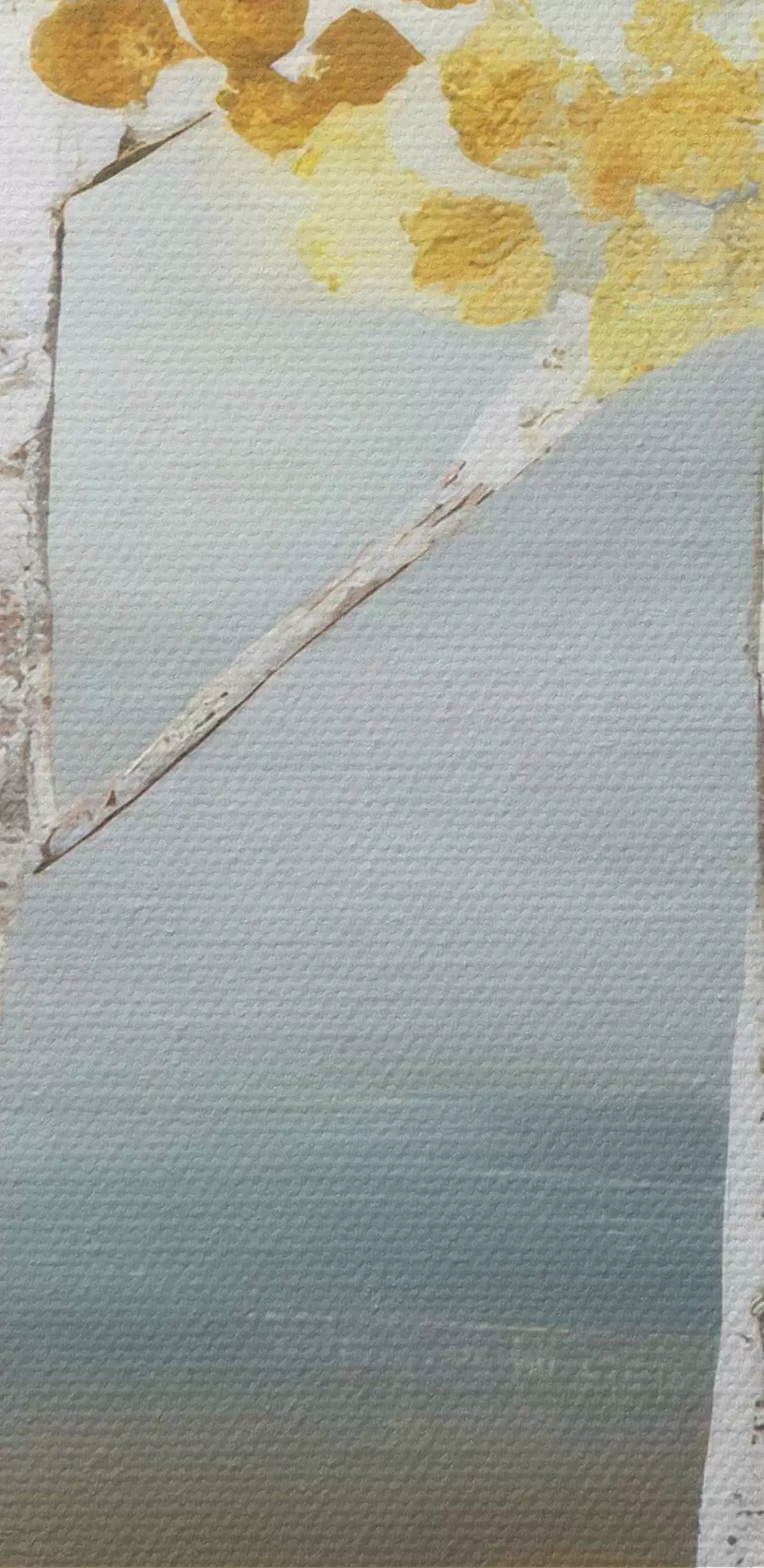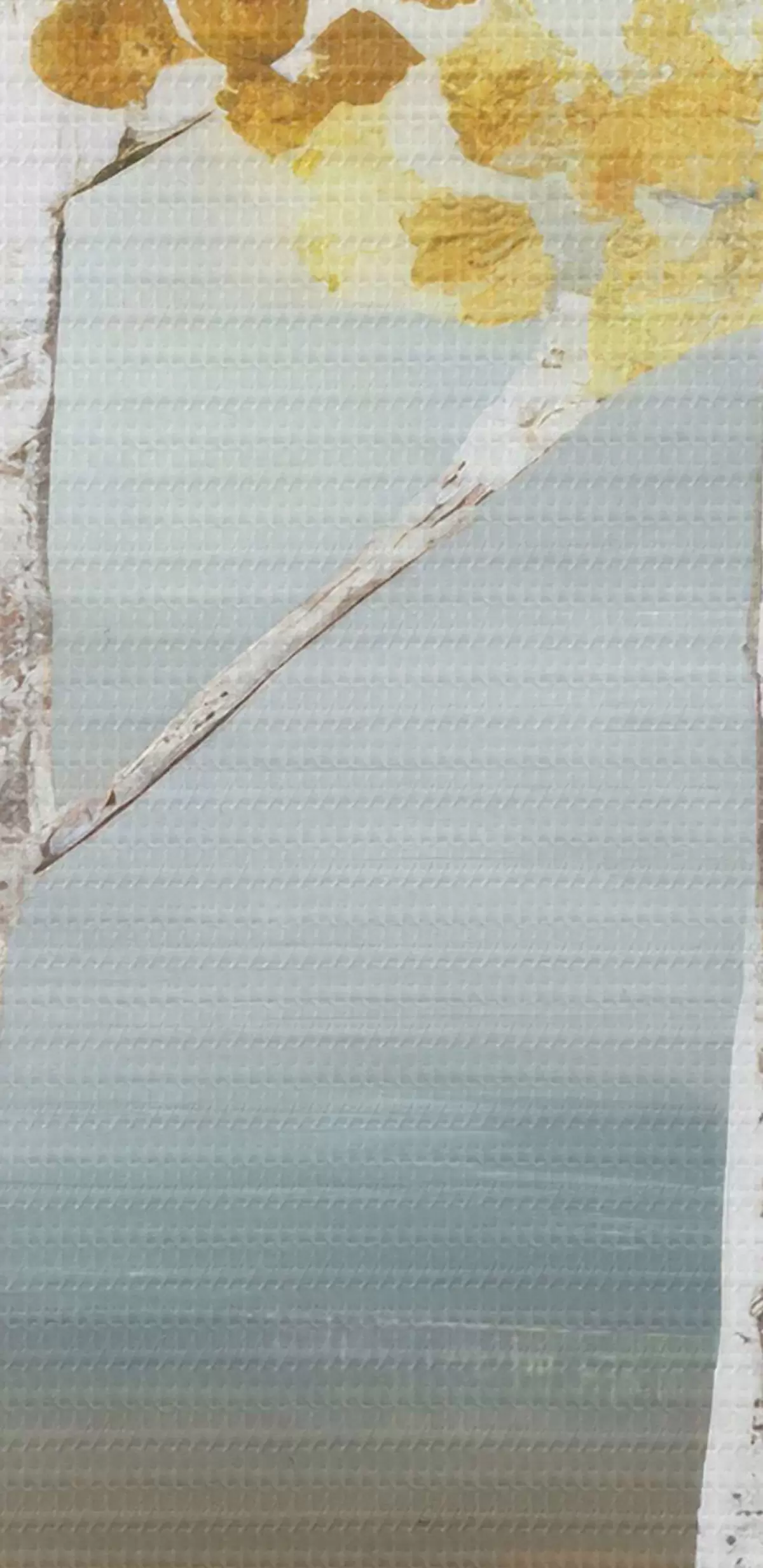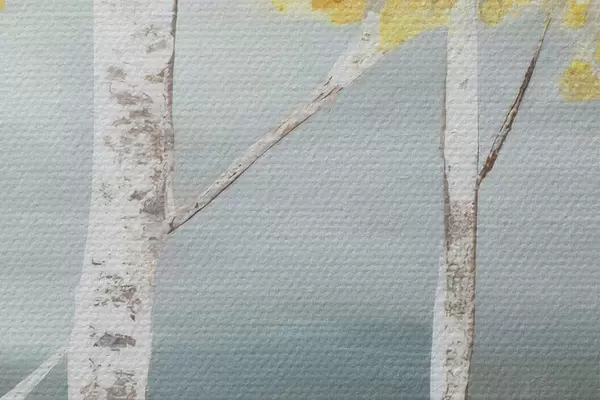 Afbeelding Olieverfschilderij met berken tegen de achtergrond van regenachtig weer Nr r34602