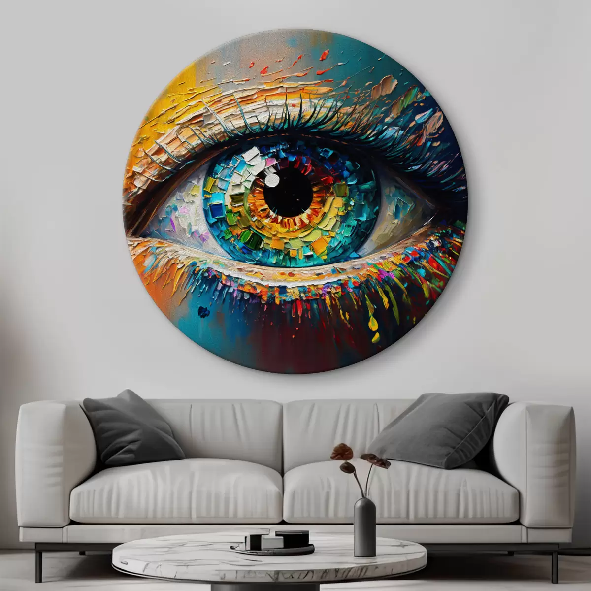 Ronde schilderijen Het oog is beschilderd met heldere kleuren r34943
