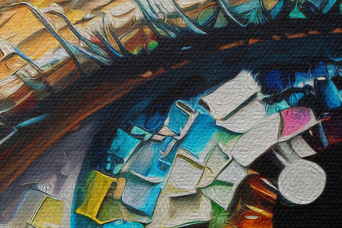 Er zijn drie soorten materiaal te bestellen: Economic Canvas - een dicht en duurzaam materiaal voor digitaal printen, identiek aan schildersdoek, waterdicht oppervlak, realistische weergave van details, materiaal met gemiddelde korrel. Premium Canvas - de textuur lijkt op die van schildersdoek (verweven kleine draden). Zachte, gedetailleerde reproductie van de afbeelding op een mat oppervlak. Eco-Premium - hoogwaardige 100% katoenen stof. Dankzij de natuurlijke katoenvezels is het materiaal duurzaam en slijtvast. Uitstekende kleurweergave en detail.