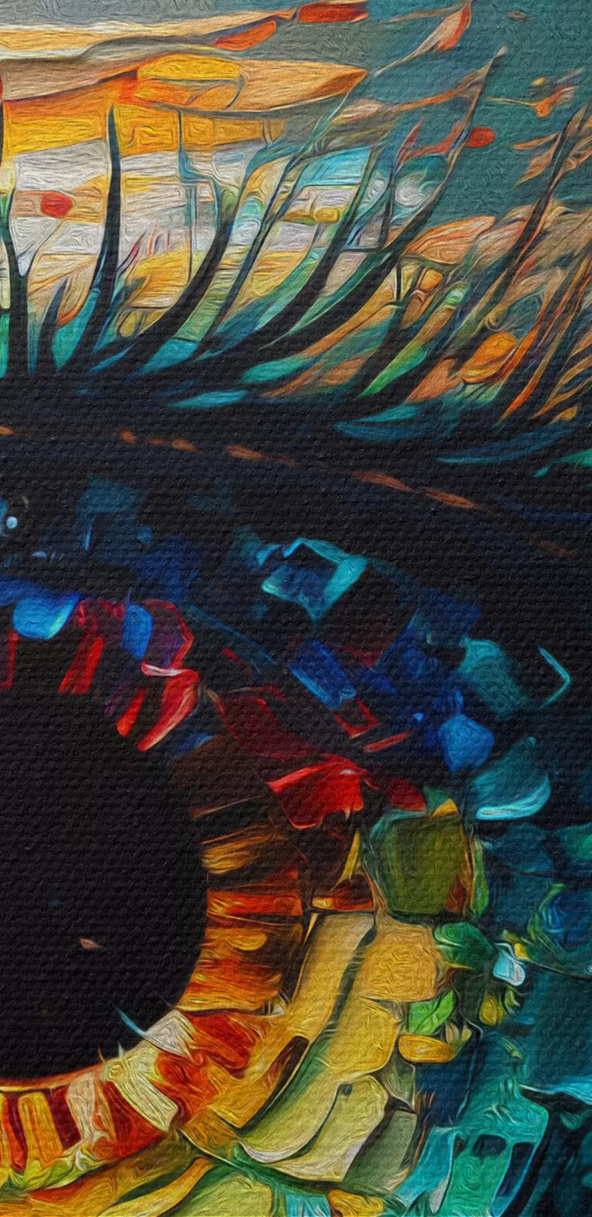 Het schilderij kan direct na ontvangst worden opgehangen. Het schilderij wordt opgespannen op een 2 cm breed houten spieraam.