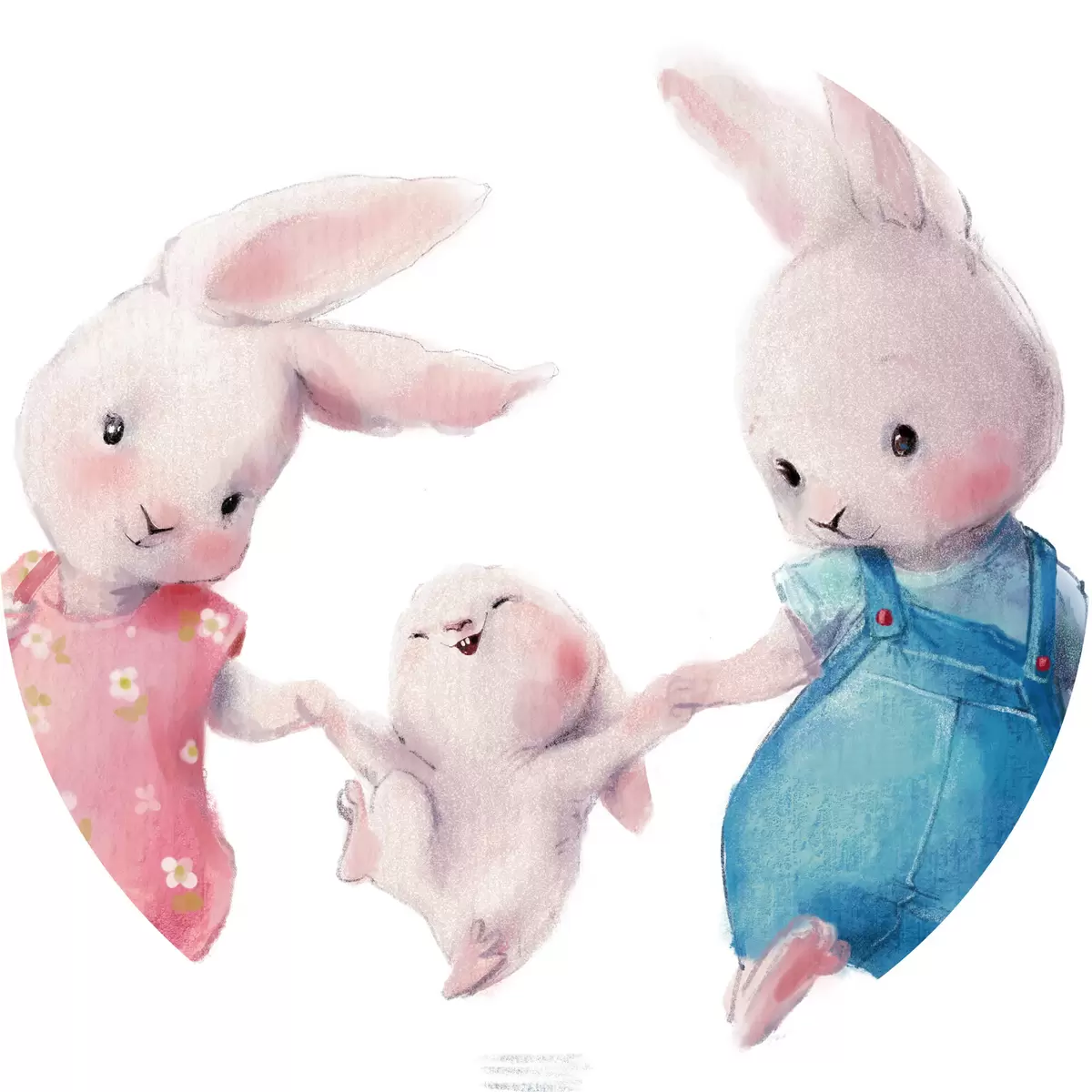 Afbeelding Een vrolijke konijnenfamilie Nr r34997