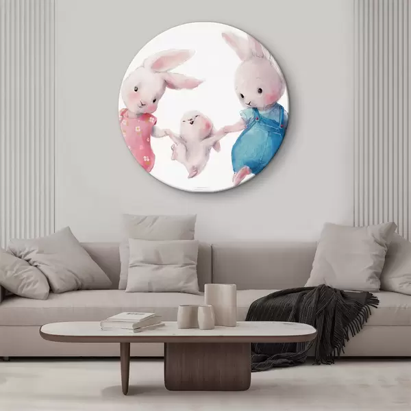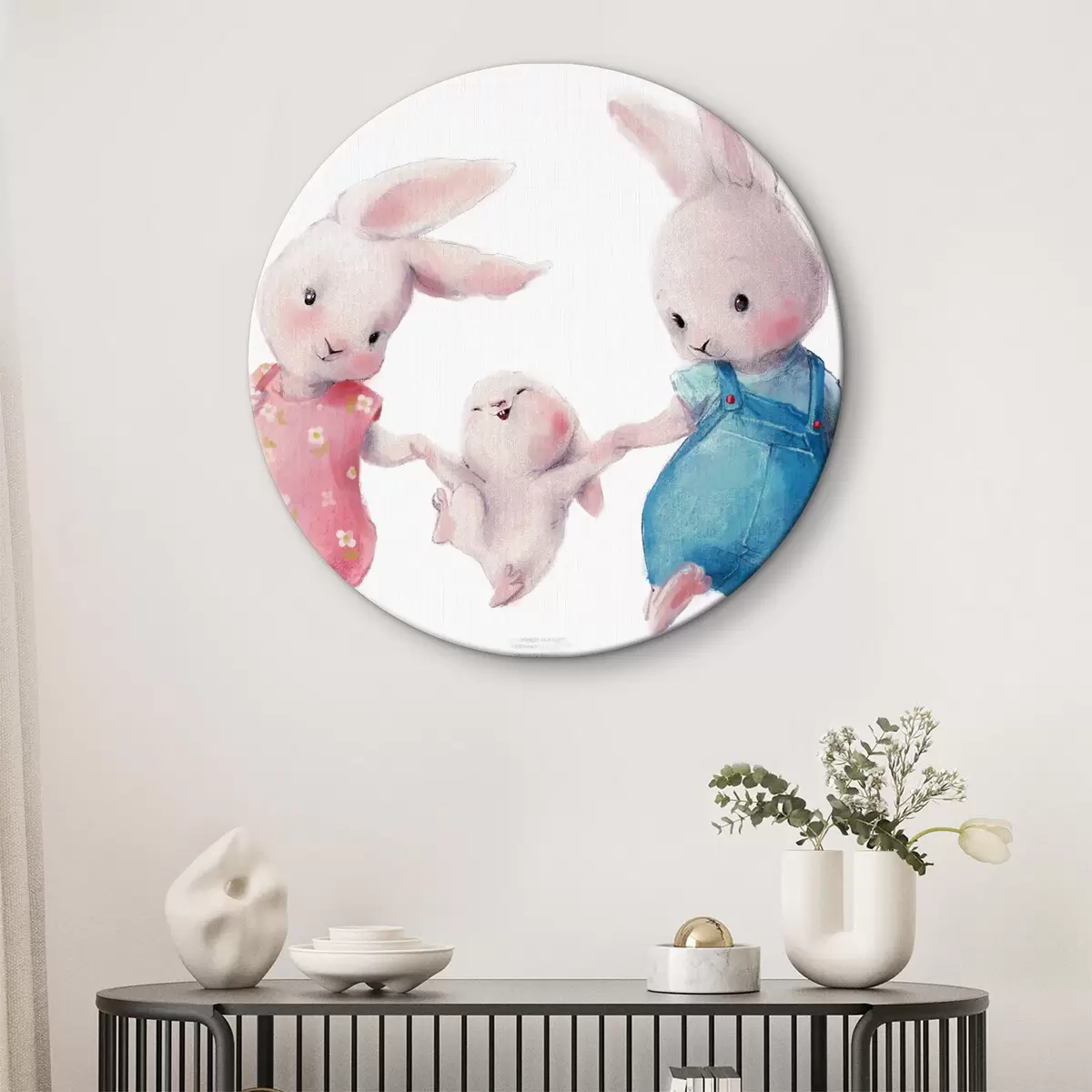 Ronde schilderijen Een vrolijke konijnenfamilie r34997