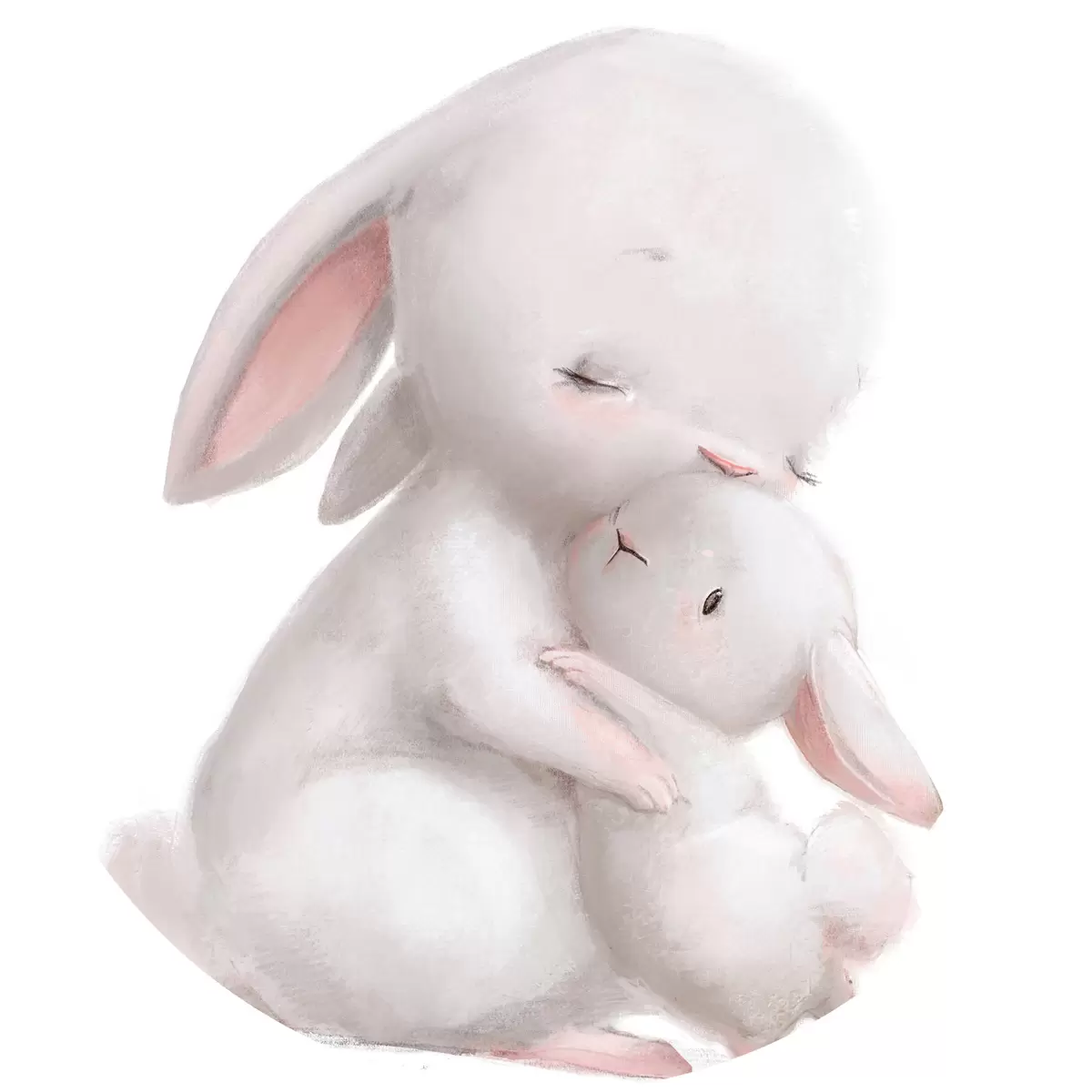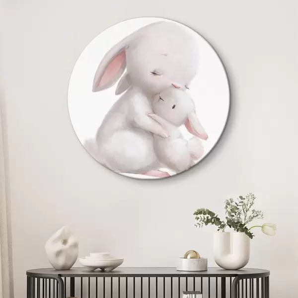 Ronde schilderijen Moeder Haas en Haas Knuffel r35047