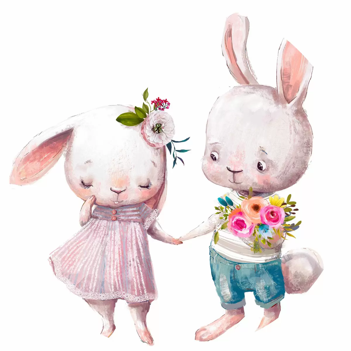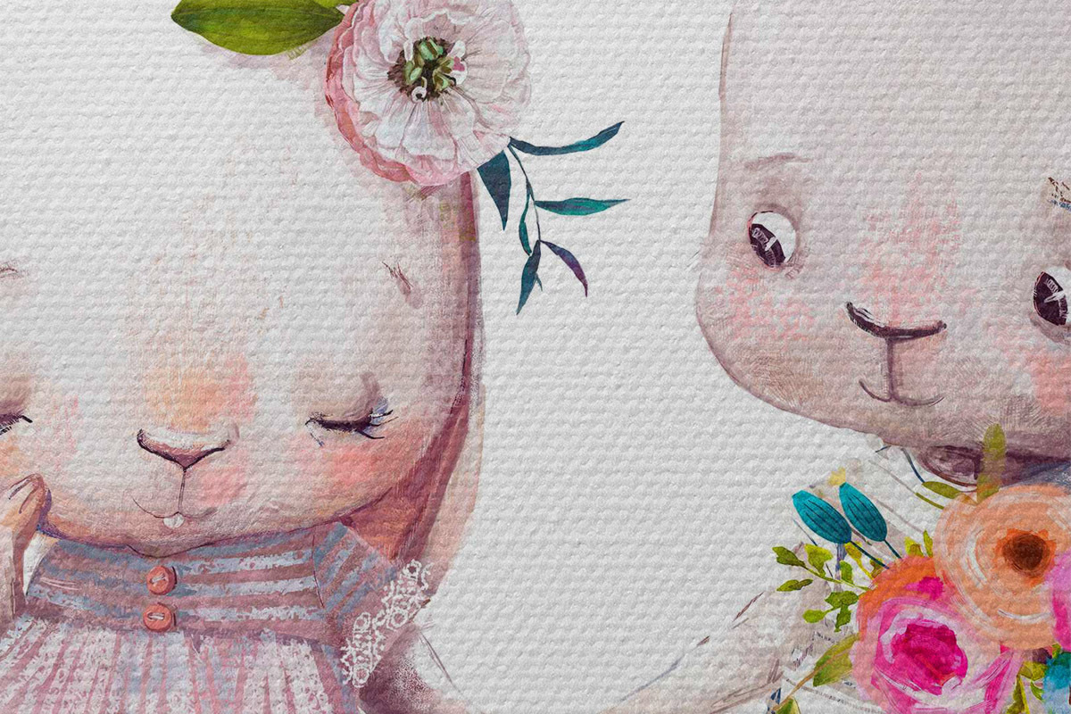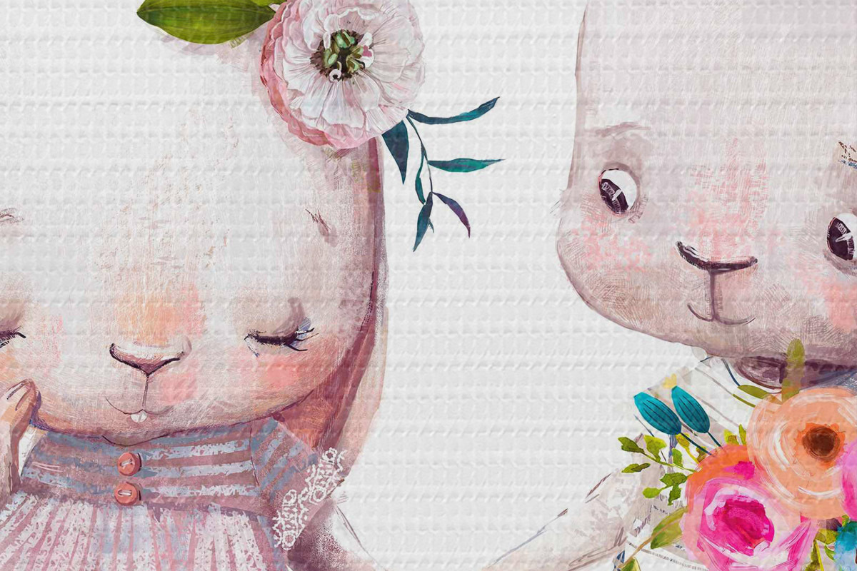 Afbeelding Een paar Date konijntjes en bloemen Nr r35055