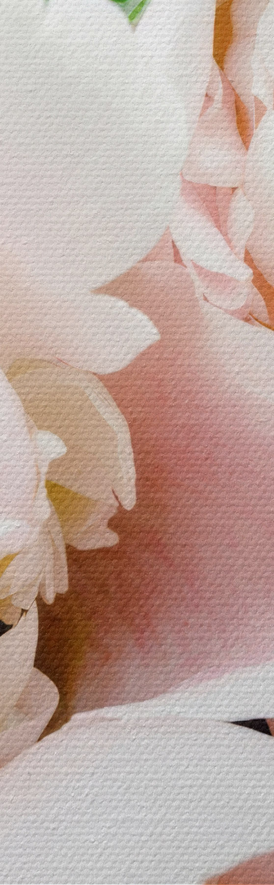 Er zijn drie soorten materiaal te bestellen: Economic Canvas - een dicht en duurzaam materiaal voor digitaal printen, identiek aan schildersdoek, waterdicht oppervlak, realistische weergave van details, materiaal met gemiddelde korrel. Premium Canvas - de textuur lijkt op die van schildersdoek (verweven kleine draden). Zachte, gedetailleerde reproductie van de afbeelding op een mat oppervlak. Eco-Premium - hoogwaardige 100% katoenen stof. Dankzij de natuurlijke katoenvezels is het materiaal duurzaam en slijtvast. Uitstekende kleurweergave en detail.