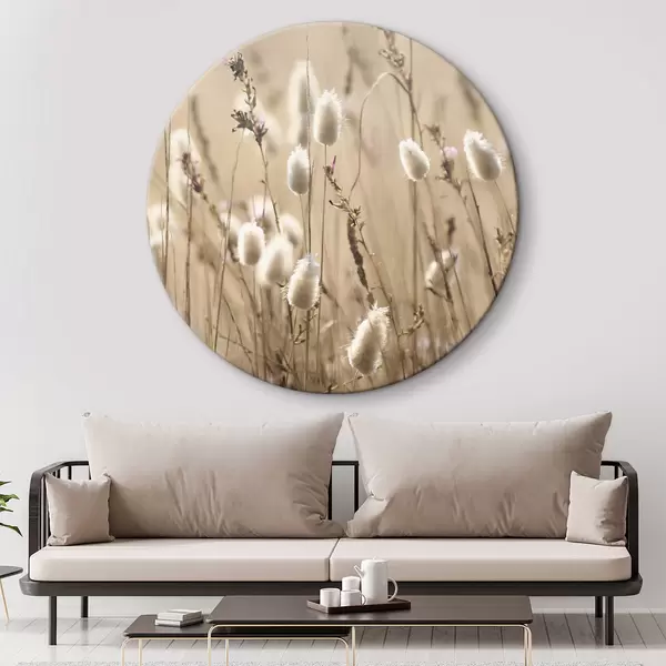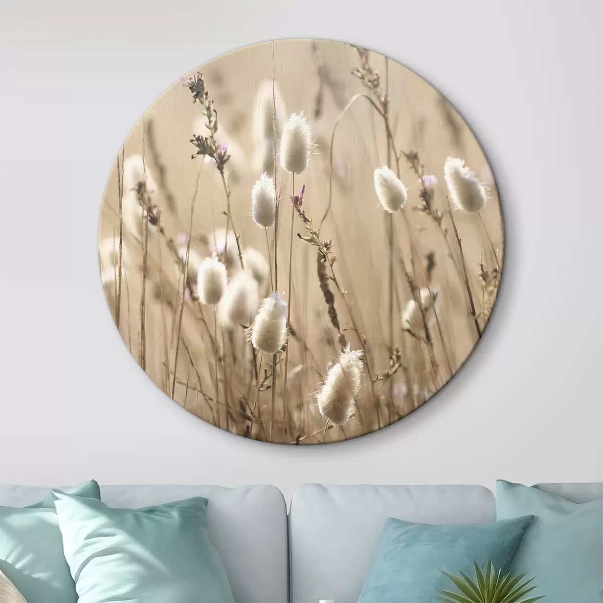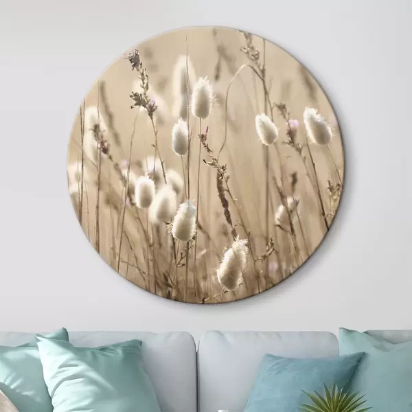 Ronde schilderijen Pluizige grassen in een zonovergoten weide r35256