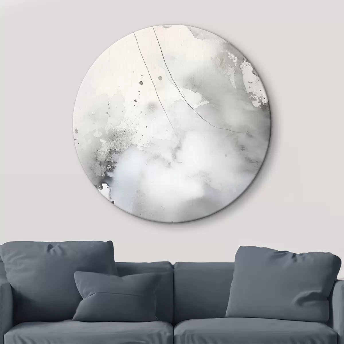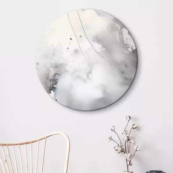 Ronde schilderijen Grijze abstractie met verfstreken r35310