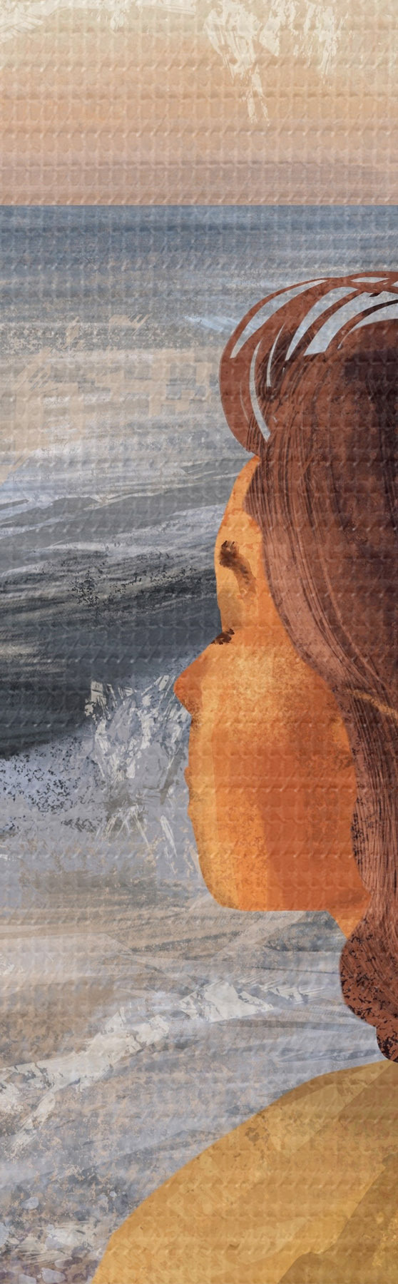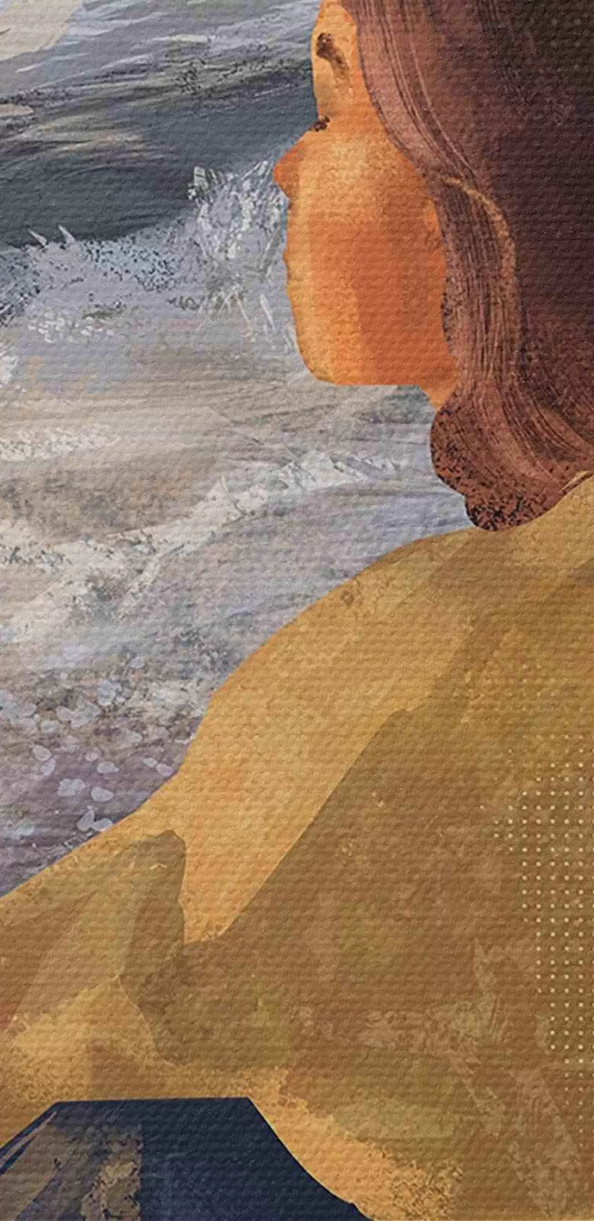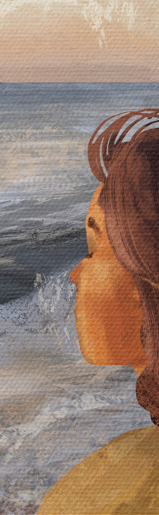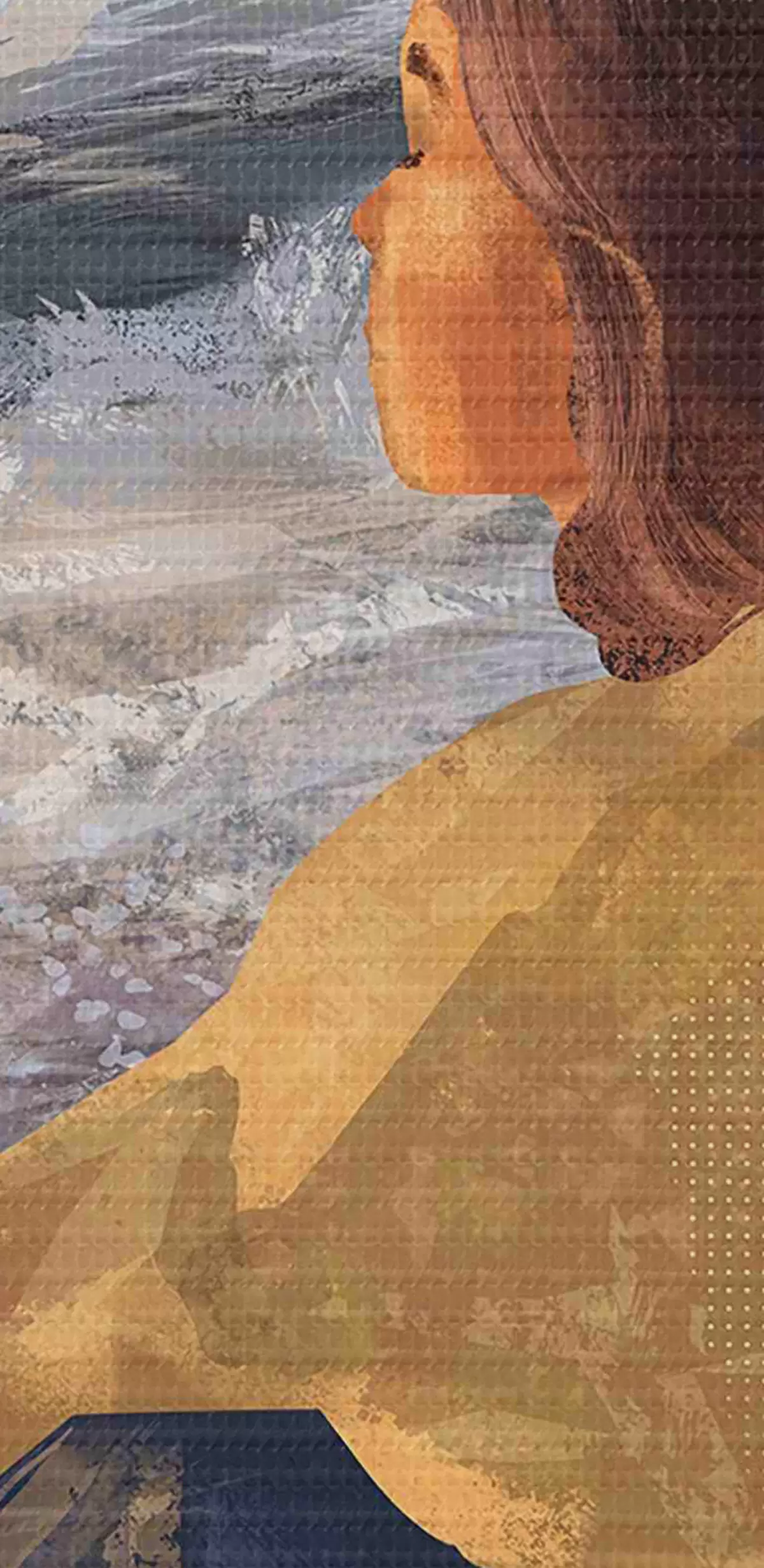 Afbeelding Vrouw aan zee, kijkend naar de golven Nr r35317