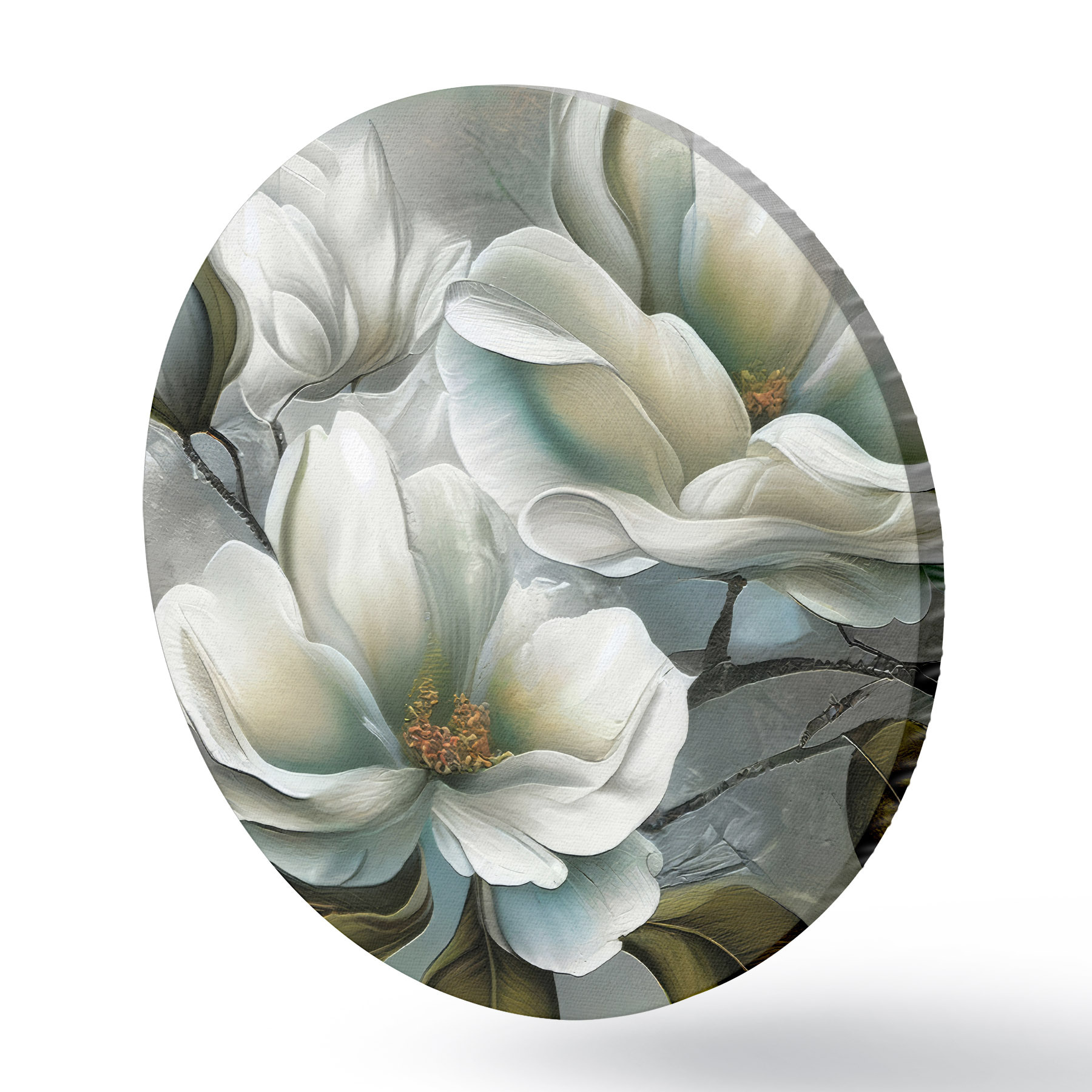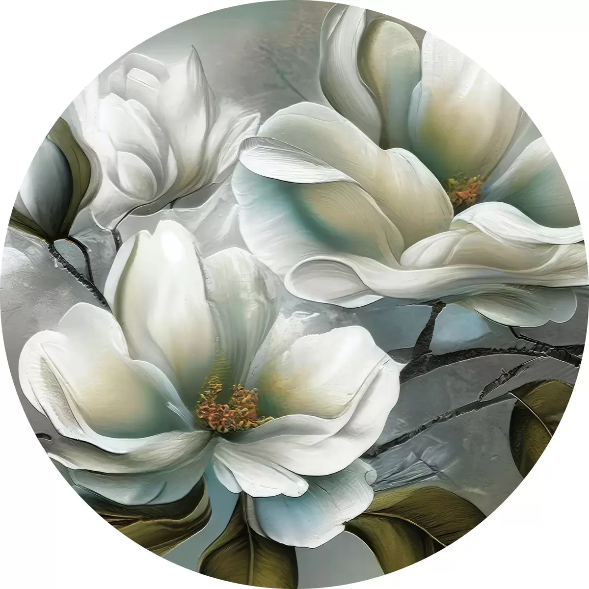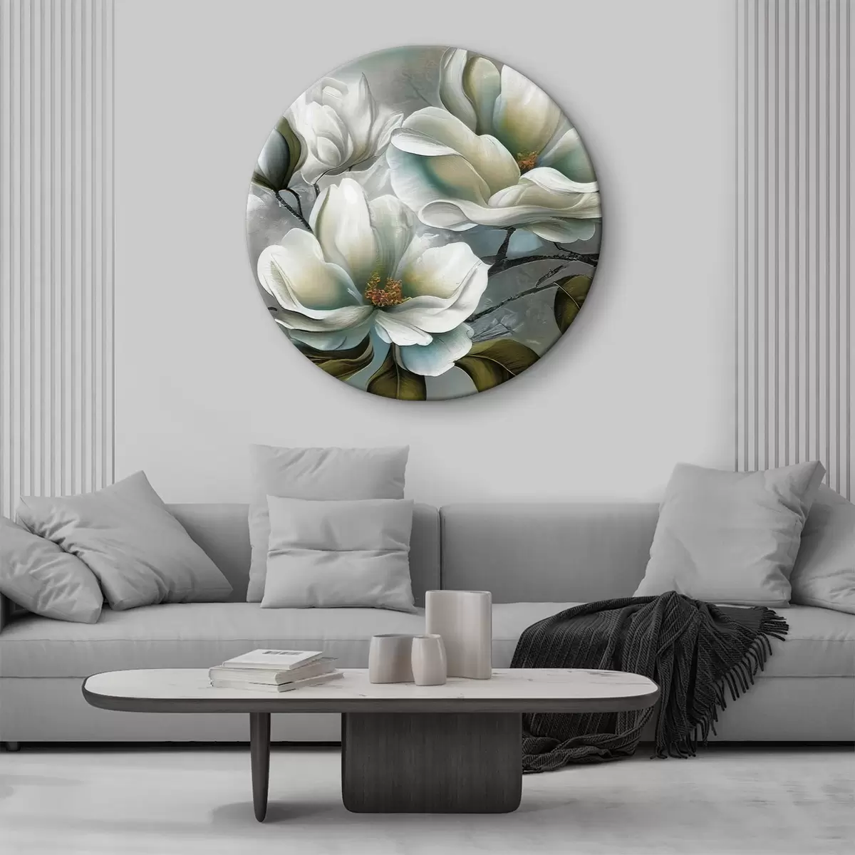 Ronde schilderijen Witte bloemen op een blauwe achtergrond r35494