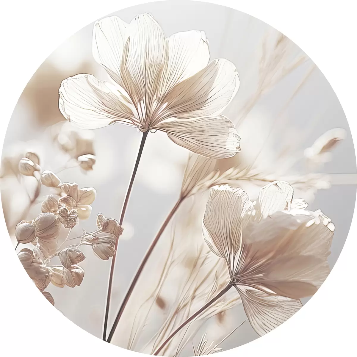 Ronde schilderijen Delicate bloemen in zacht ochtendlicht r35603