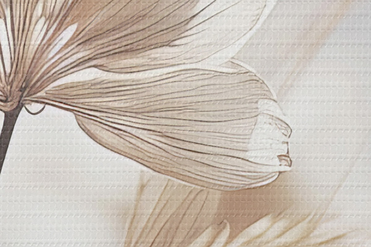 Er zijn drie soorten materiaal te bestellen: Economic Canvas - een dicht en duurzaam materiaal voor digitaal printen, identiek aan schildersdoek, waterdicht oppervlak, realistische weergave van details, materiaal met gemiddelde korrel. Premium Canvas - de textuur lijkt op die van schildersdoek (verweven kleine draden). Zachte, gedetailleerde reproductie van de afbeelding op een mat oppervlak. Eco-Premium - hoogwaardige 100% katoenen stof. Dankzij de natuurlijke katoenvezels is het materiaal duurzaam en slijtvast. Uitstekende kleurweergave en detail.