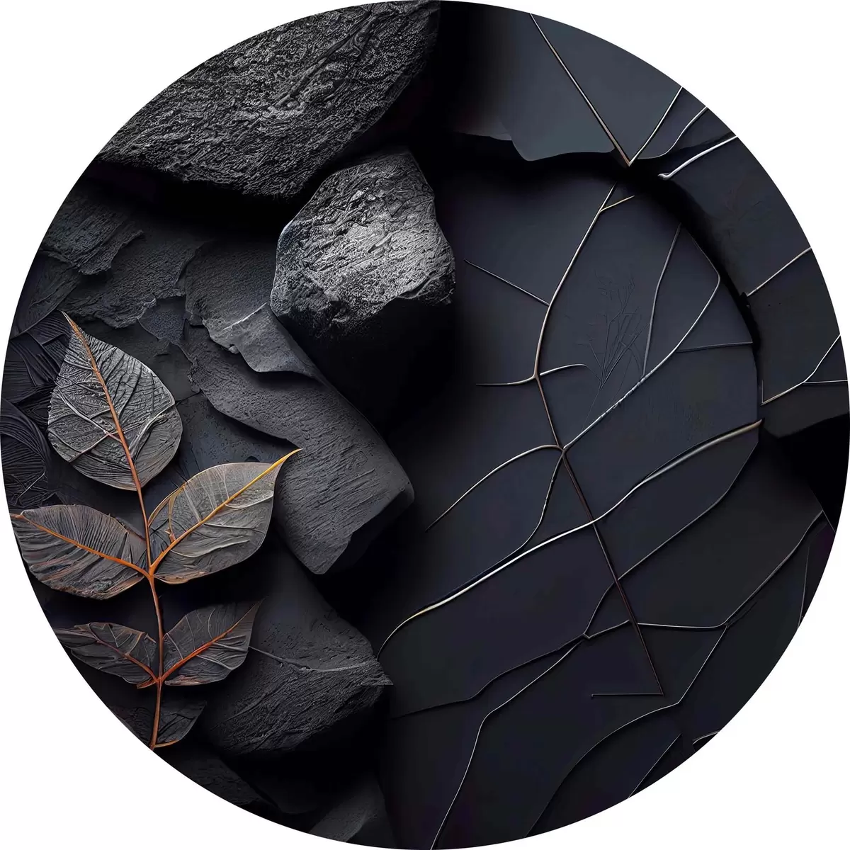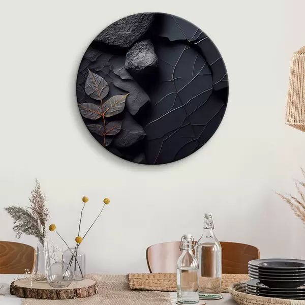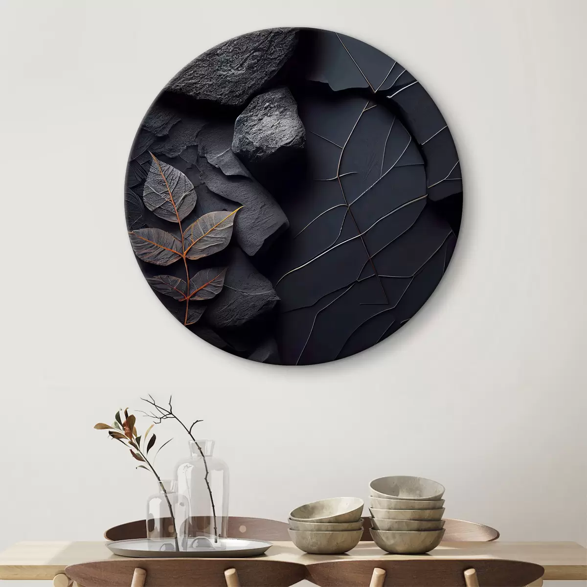 Ronde schilderijen Bladeren op gebarsten harde zwarte aarde r35706