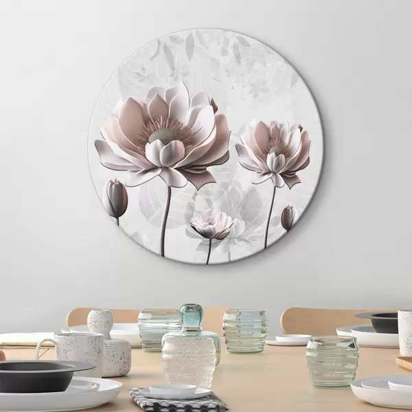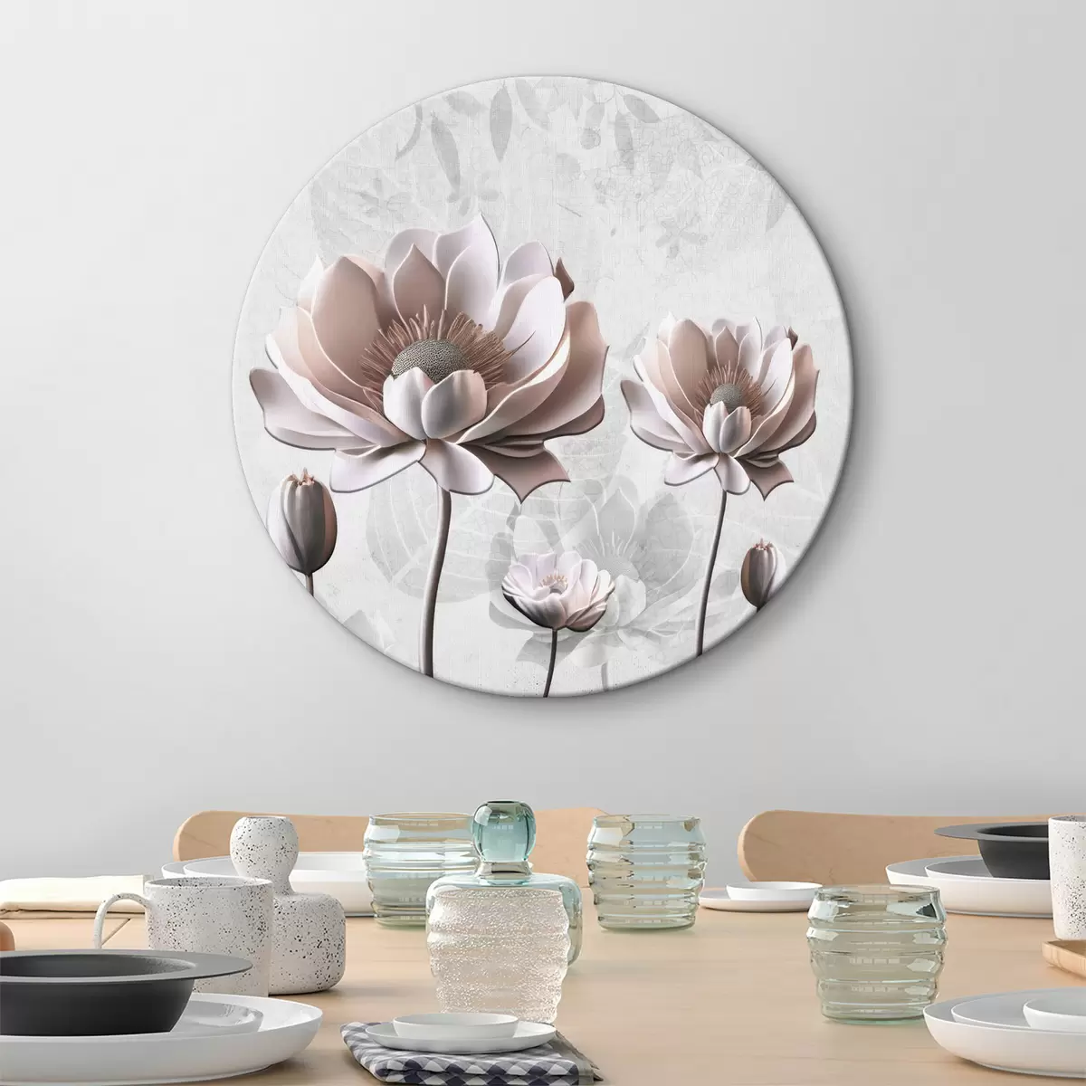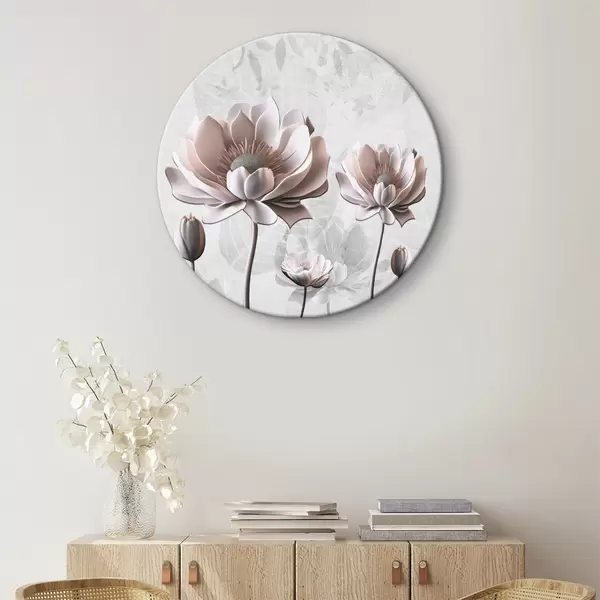 Ronde schilderijen Witte bloemen op een witte achtergrond r35736