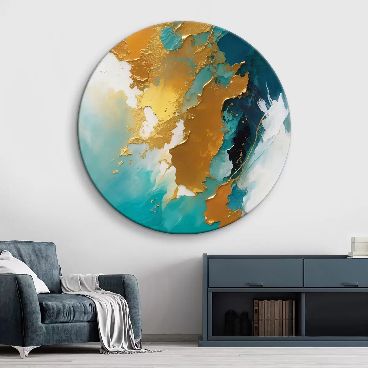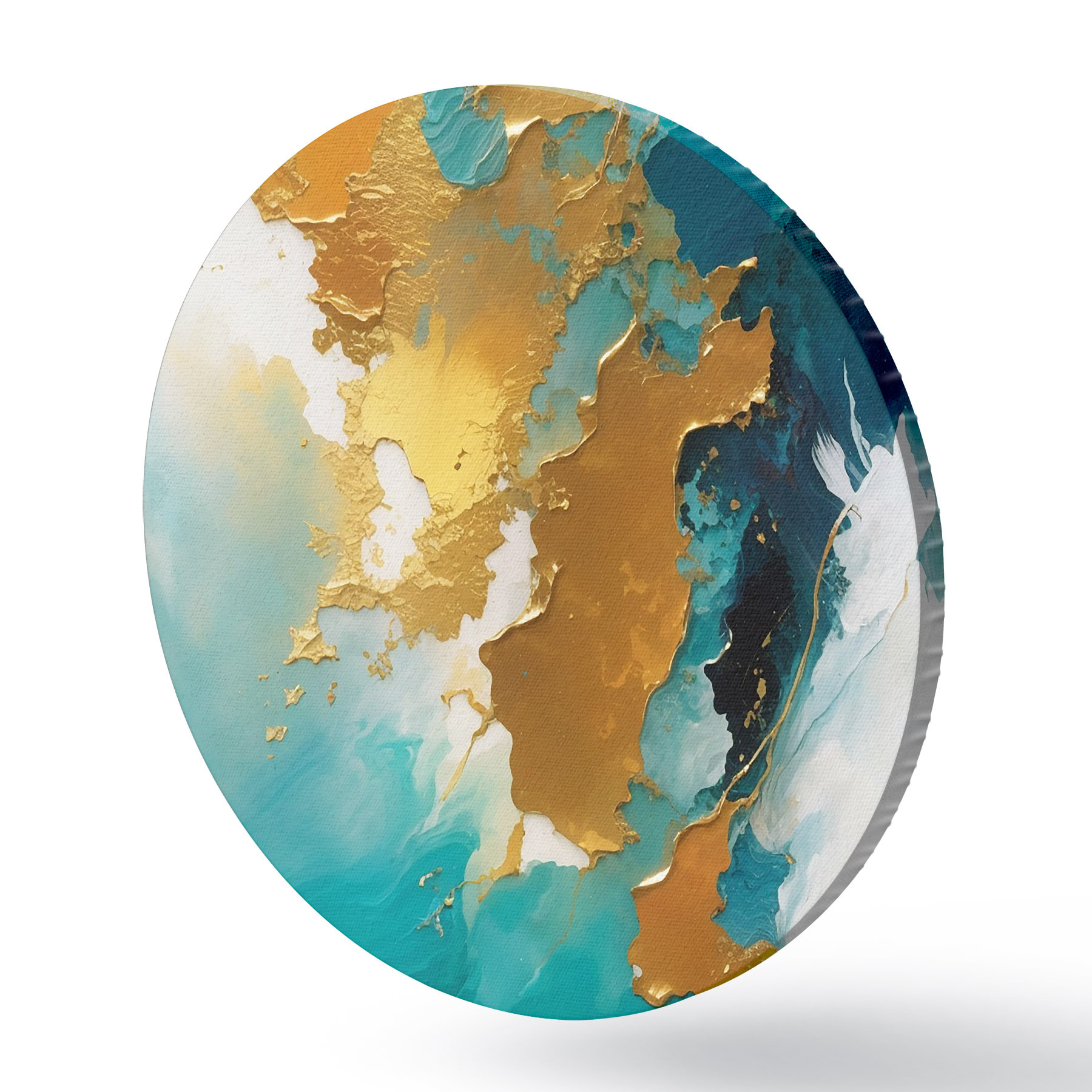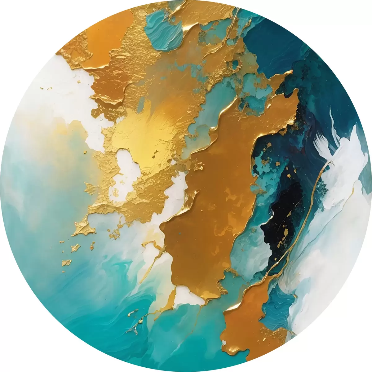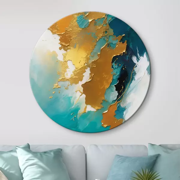 Ronde schilderijen Teal en amber abstracte vloeibare compositie r35823