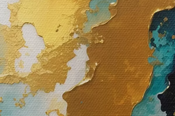 Afbeelding Teal en amber abstracte vloeibare compositie Nr r35823