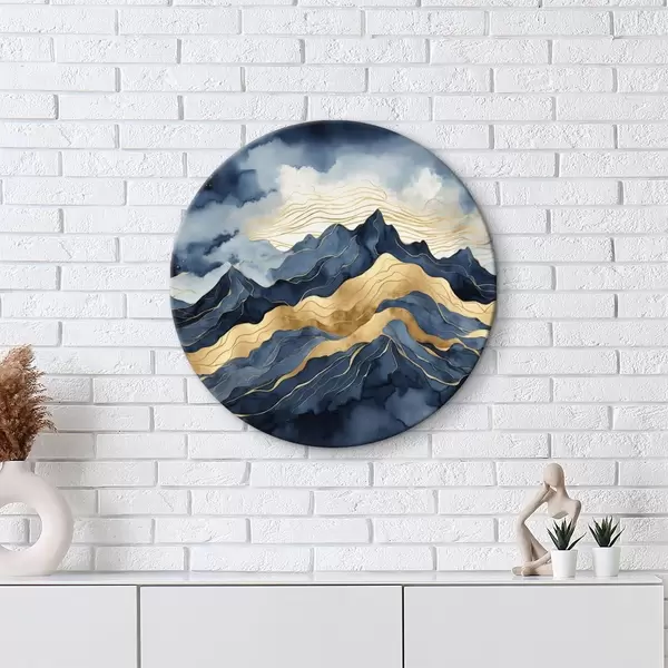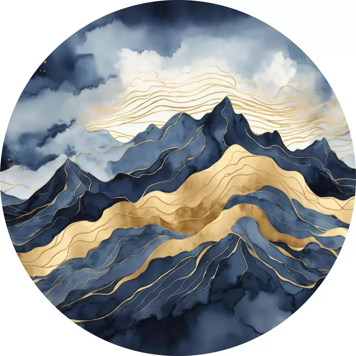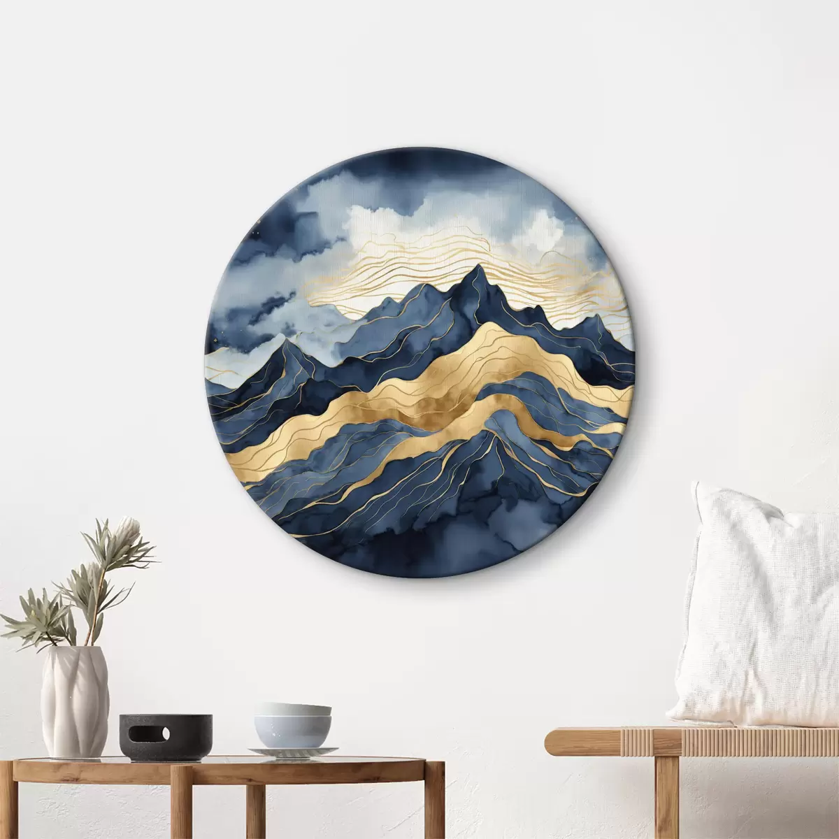 Ronde schilderijen Blauwe bergen tegen de achtergrond van een sterrenhemel r35826