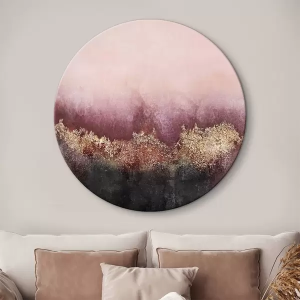 Ronde schilderijen Bordeauxrood en zwart abstractie r35848