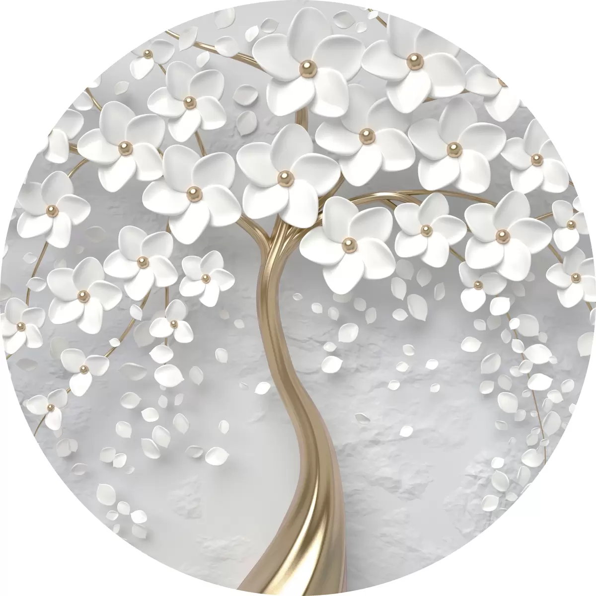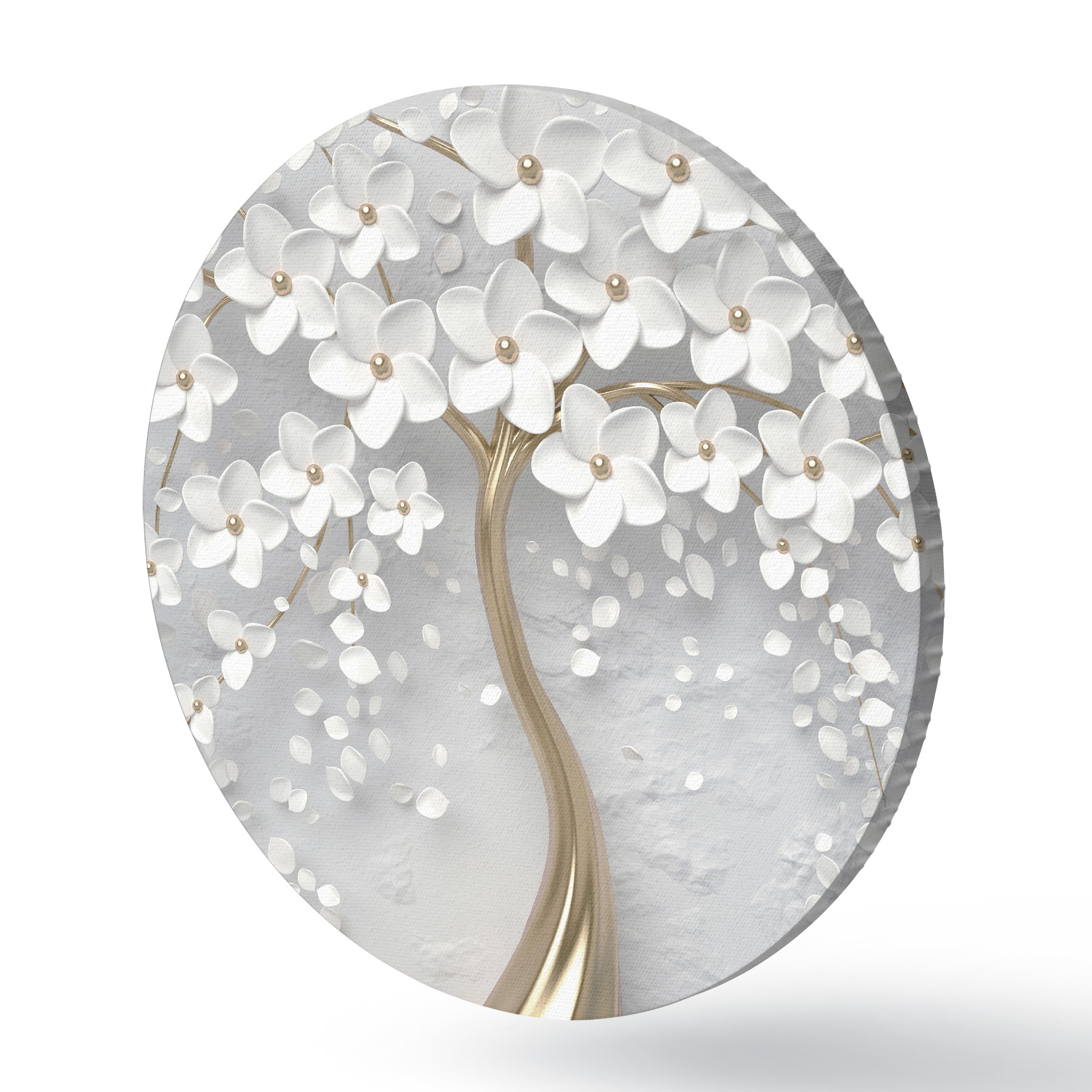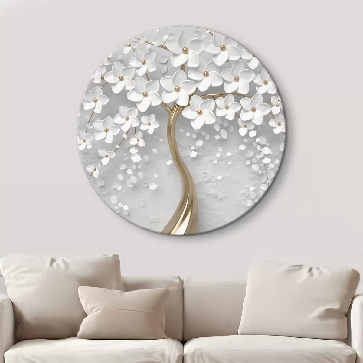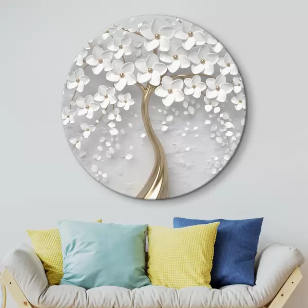 Ronde schilderijen Volumineuze boom met veel witte bloemen r35856